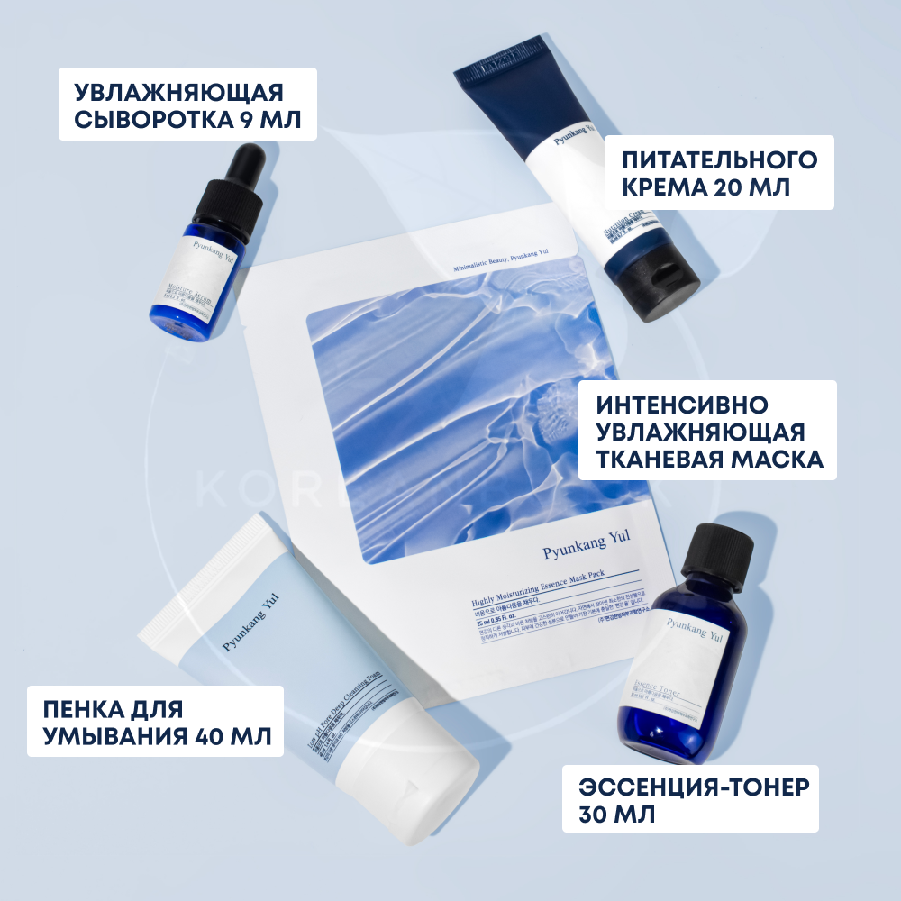 | В наборе | Pyunkang Yul пенка для умывания + тканевая маска для лица + тонер + крем для лица + сыворотка увлажняющая |