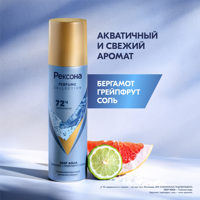 Rexona (150) Perfume Collection - Deep Aqua Парфюмированный дезодорант-антиперспирант "бергамот, грейпфрут, соль" 150 мл.