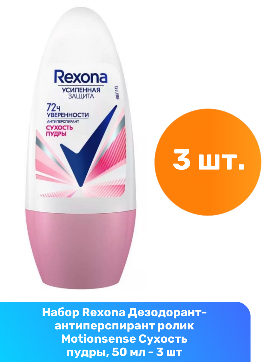Rexona Дезодорант-антиперспирант ролик Motionsense Сухость пудры, 50 мл - 3 шт