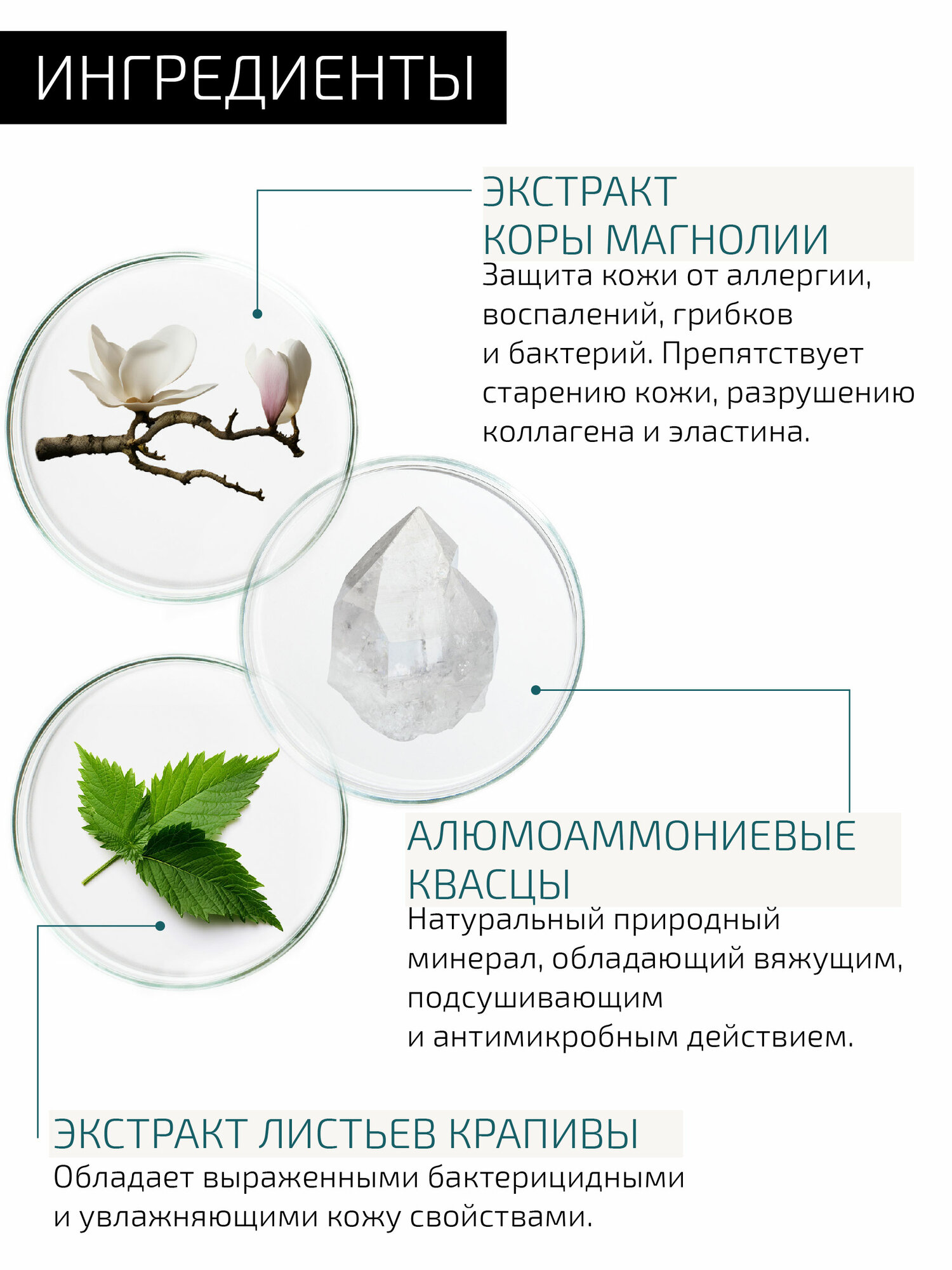 | Активный ингредиент | Экстракт коры магнолии, крапива, ромашка, шалфей |