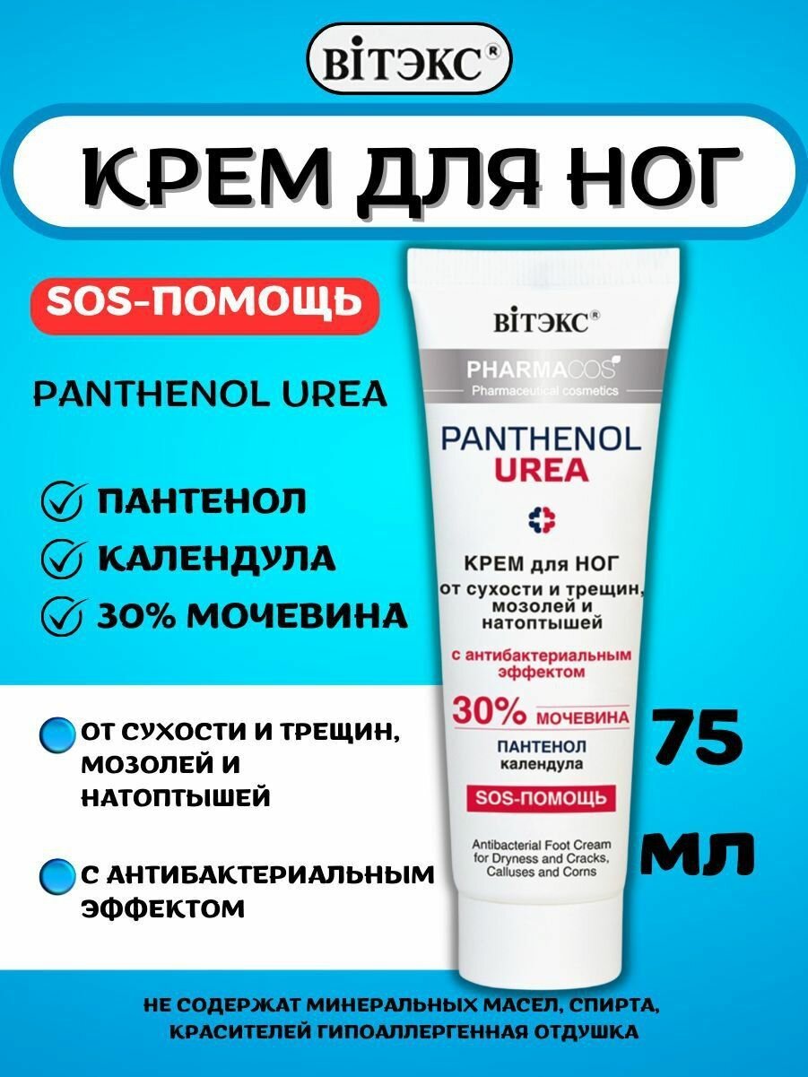 Купить Крем для ног от сухости и трещин, мозолей и натоптышей с антибактериальным эффектом Pharmacos Panthenol Urea