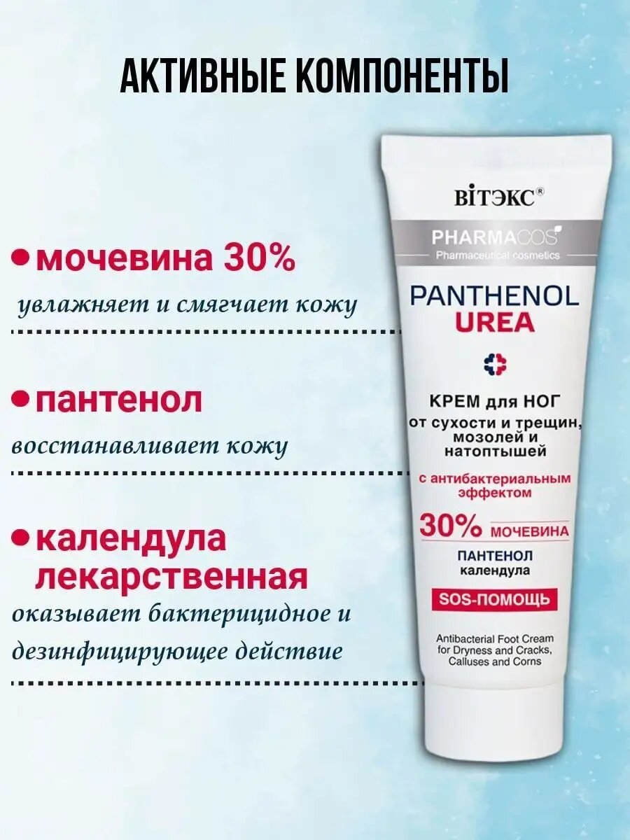 Крем для ног от сухости и трещин, мозолей и натоптышей с антибактериальным эффектом Pharmacos Panthenol Urea интересное: