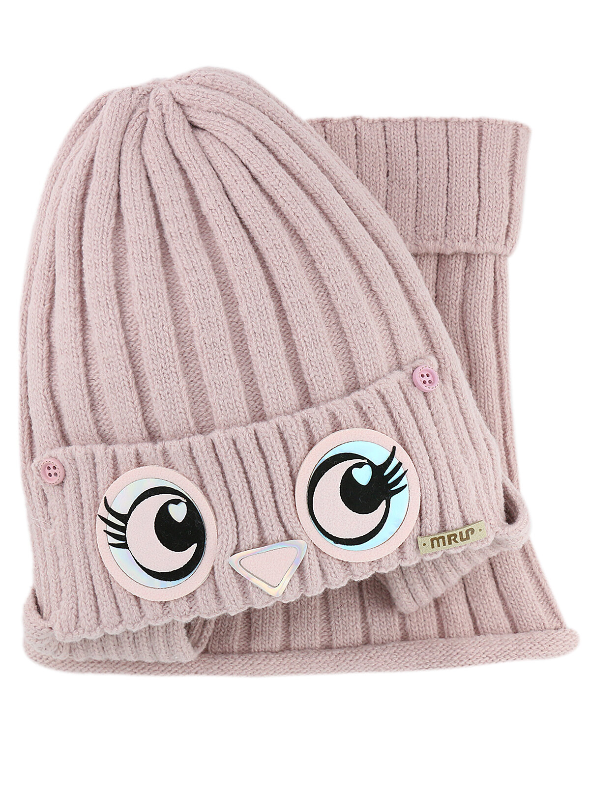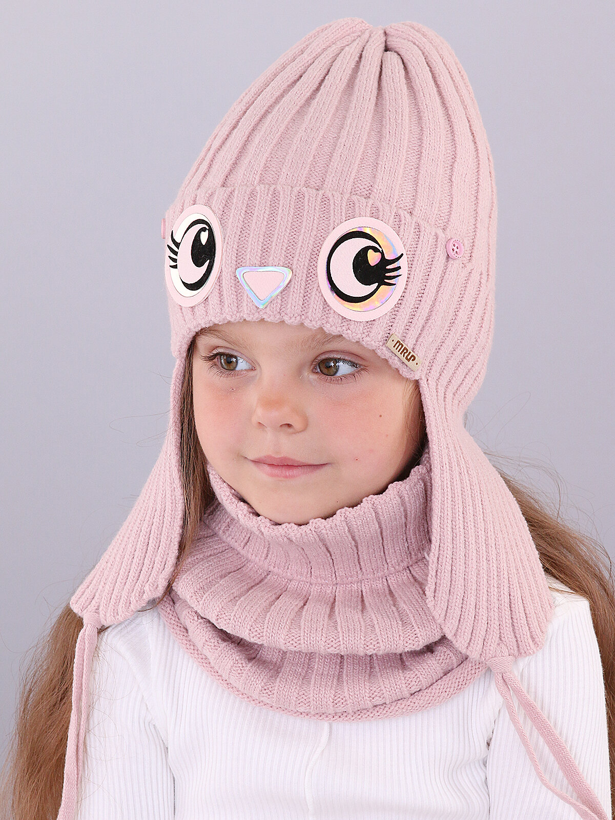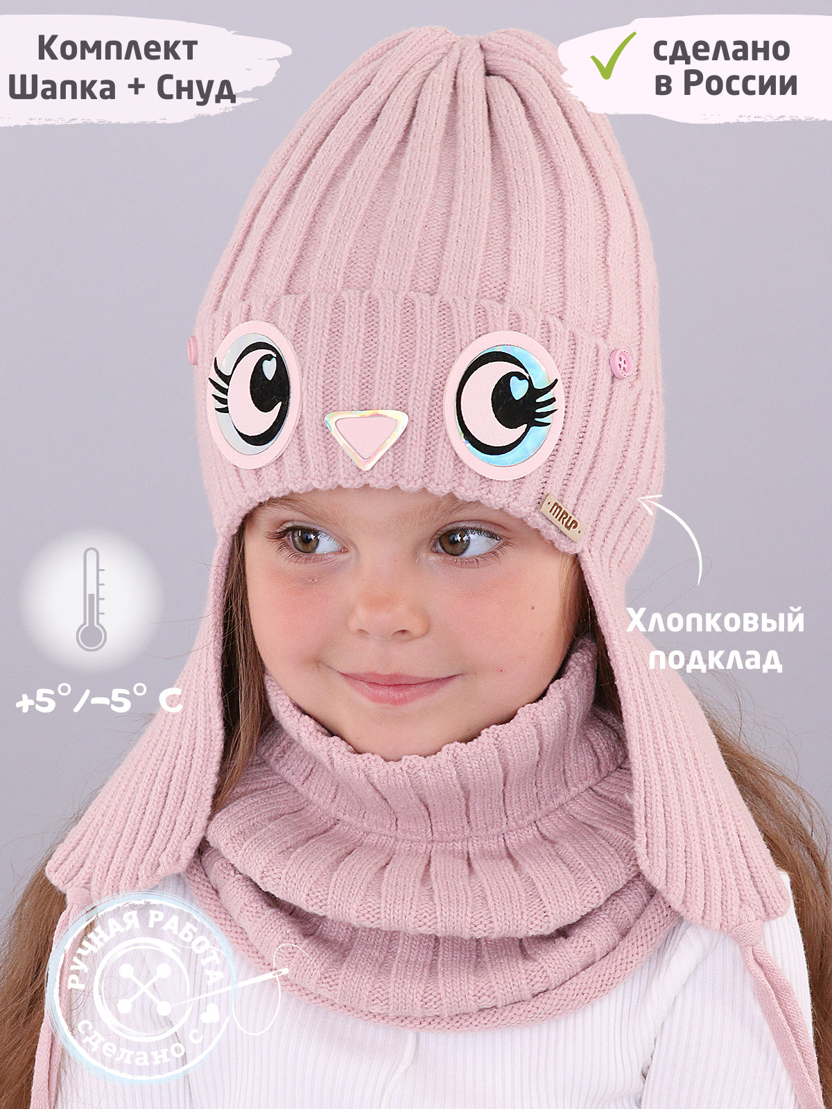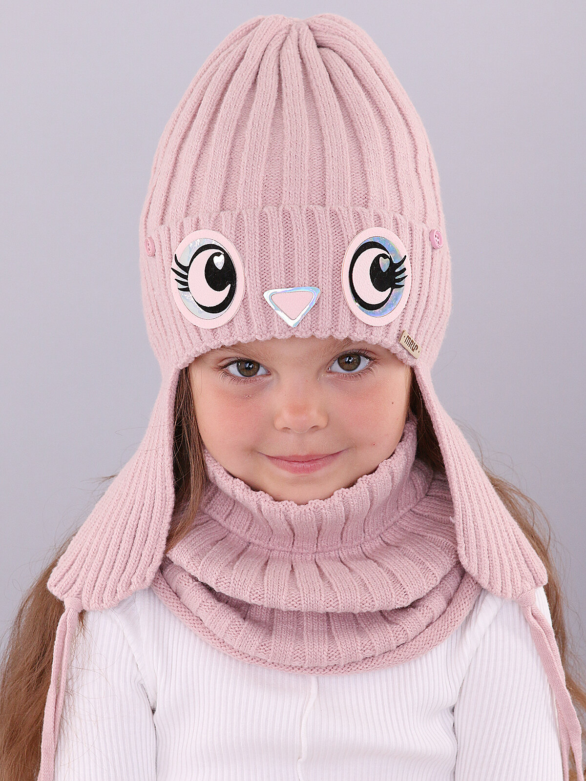 Шапка и снуд с хлопковым подкладом поляярик R01-11 пудровый, 52-54