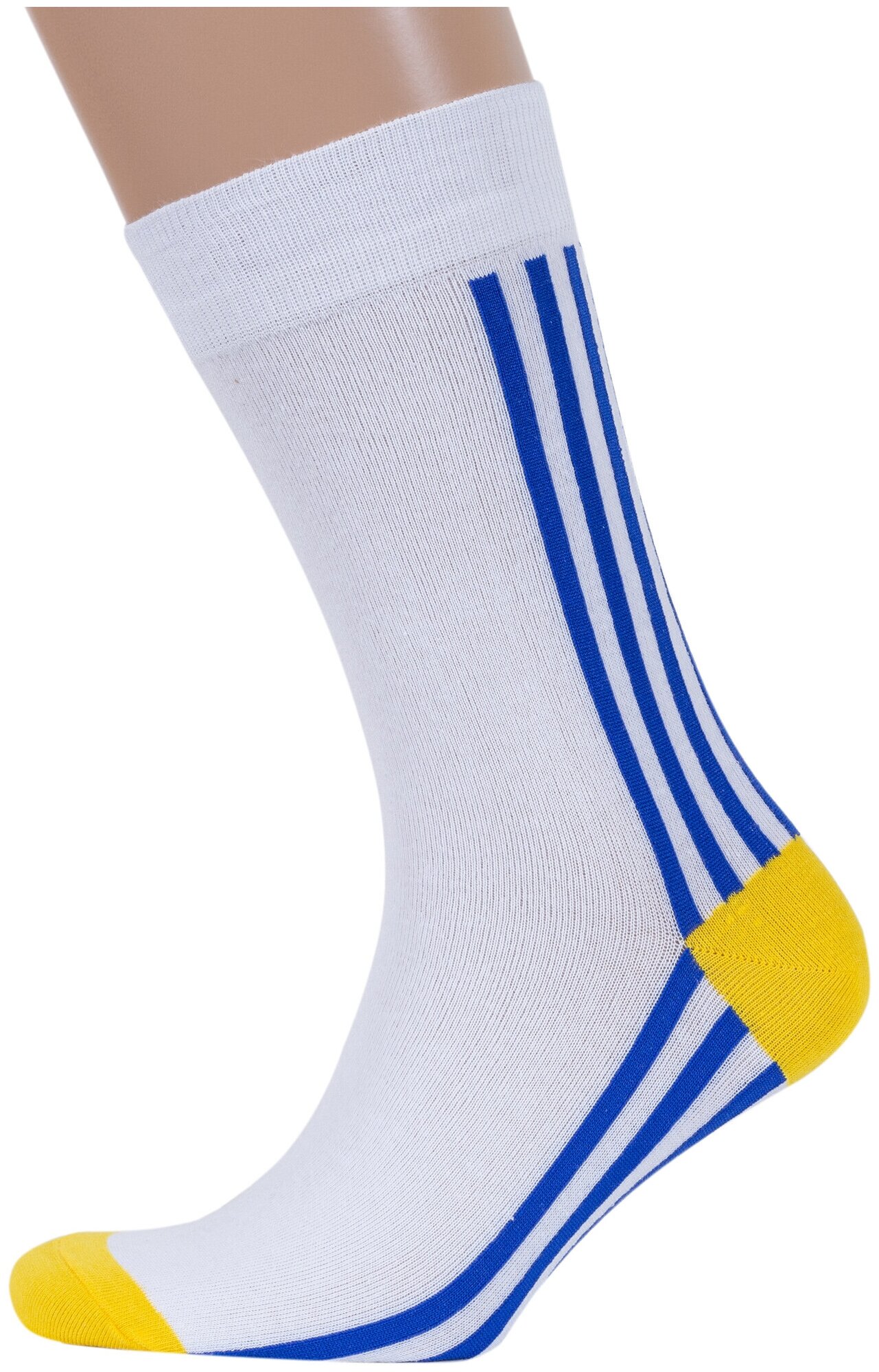 НС-5-203/2 Набор из 5 пар мужских носков "Нева-Сокс" белые желтые коричневые серые полоска ромб принт рисунок яркие цветные разноцветные повседневные длинные высокие средние хлопок хб хлопковые коробка комплект подарок