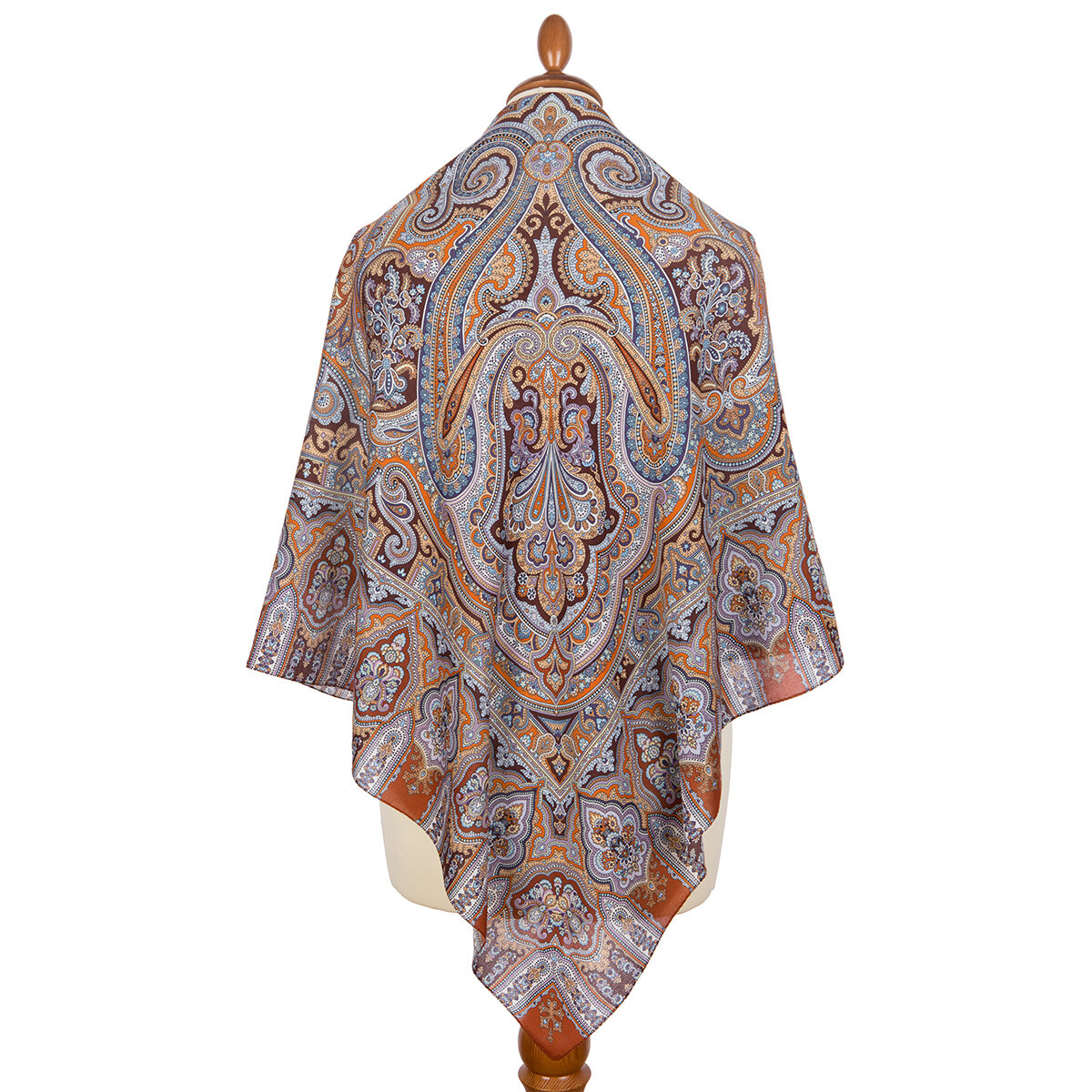 Платок на голову женский из вискозы Павловопосадские платки 1856 Фергана 12, коричневый, 135 х 135 см