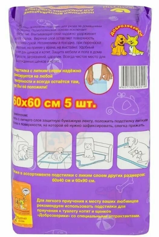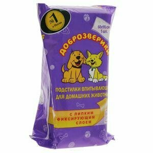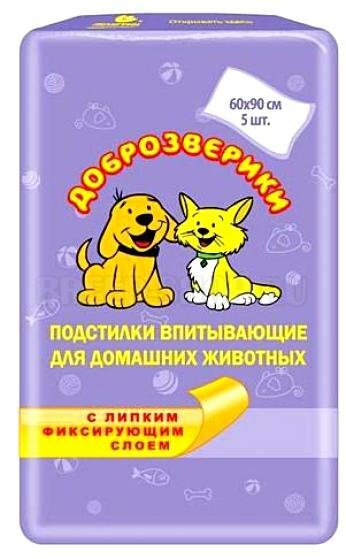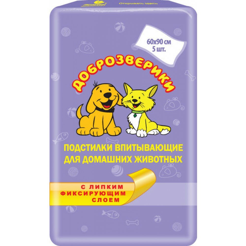 Пелигрин "Доброзверики" Подстилки впитывающие с липким слоем 60*90см 5шт