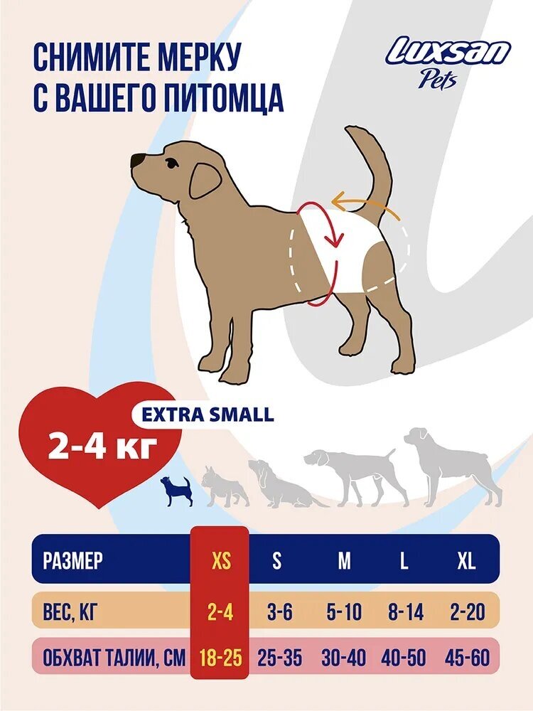 Luxsan Подгузники для животных: 2-4кг (X-small), 18шт.