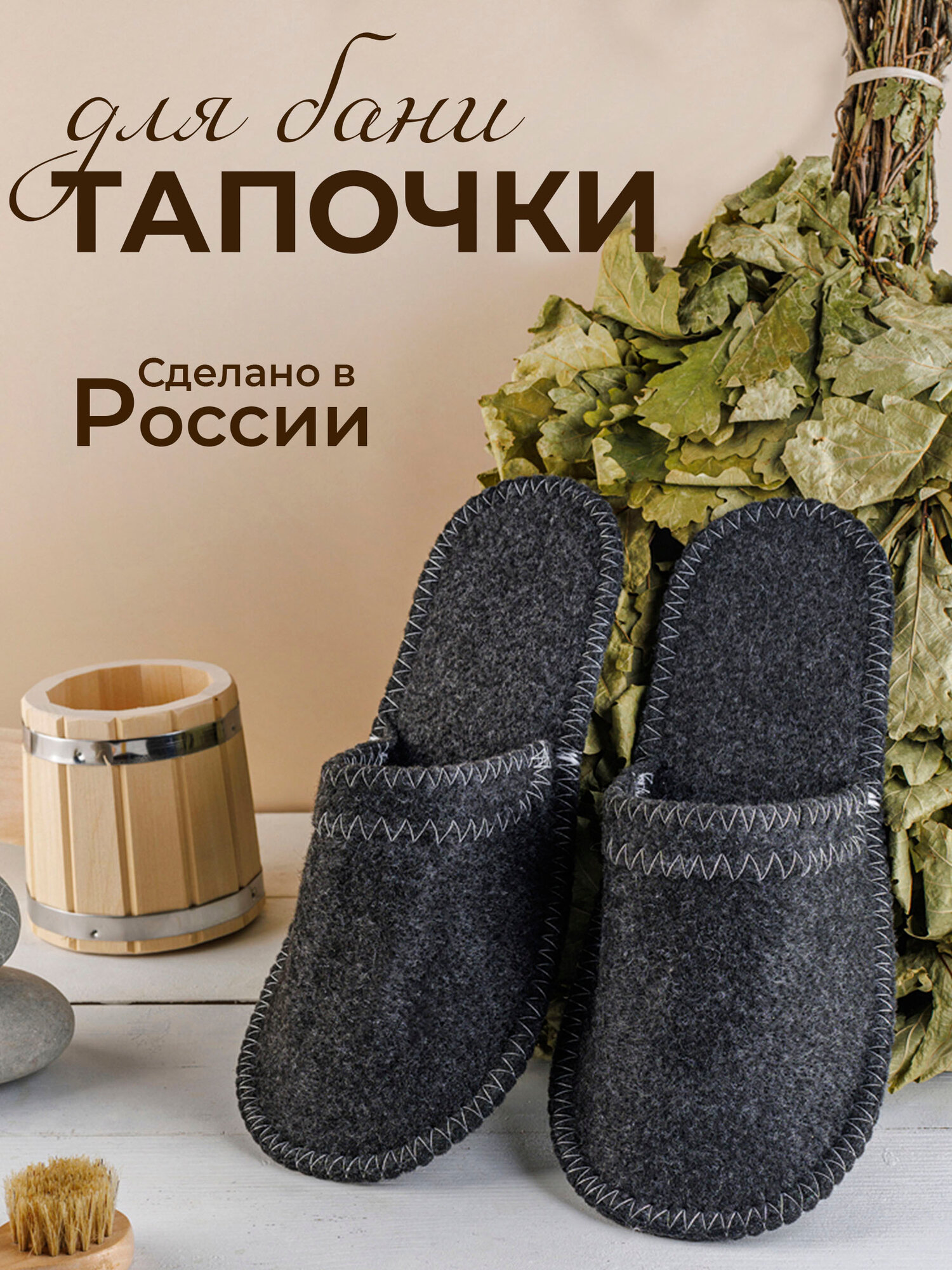 Тапочки для бани войлочные Банные Секреты унисекс, размер 37–43, Серые интересное: