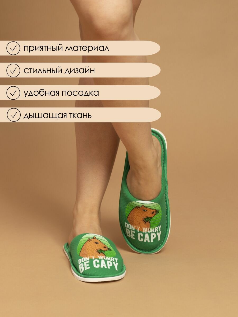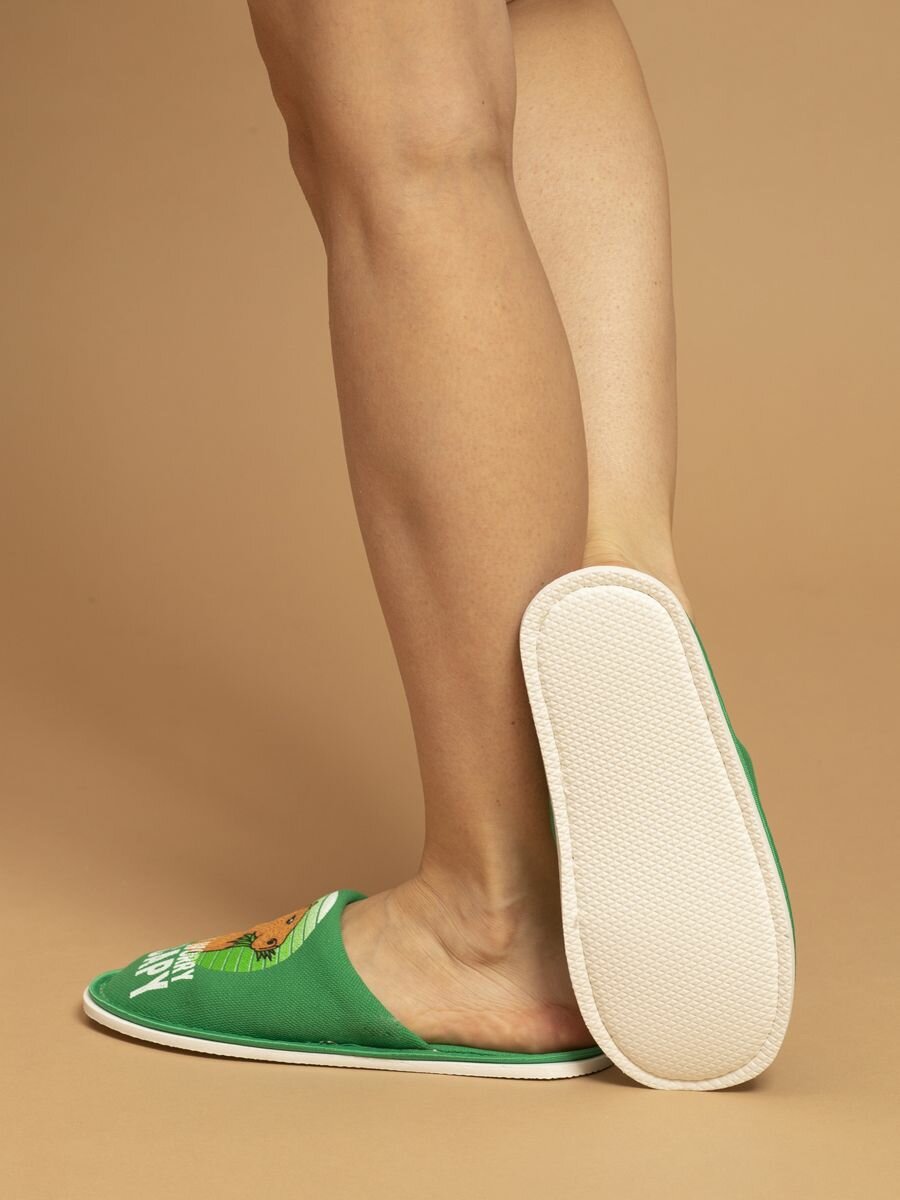 Тапочки домашние женские хлопковые ИвШуз, капибара зеленый интересное: