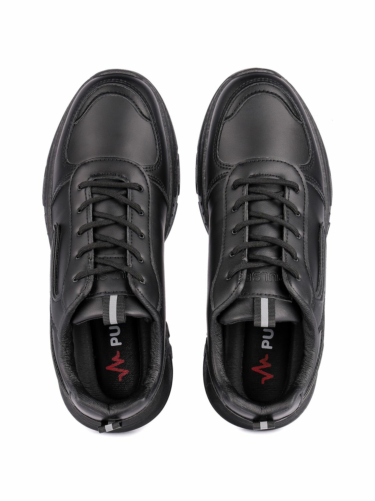 Купить Осенние и летние черные женские кроссовки из эко кожи на шнурках Pulse 203-32WB-805ST