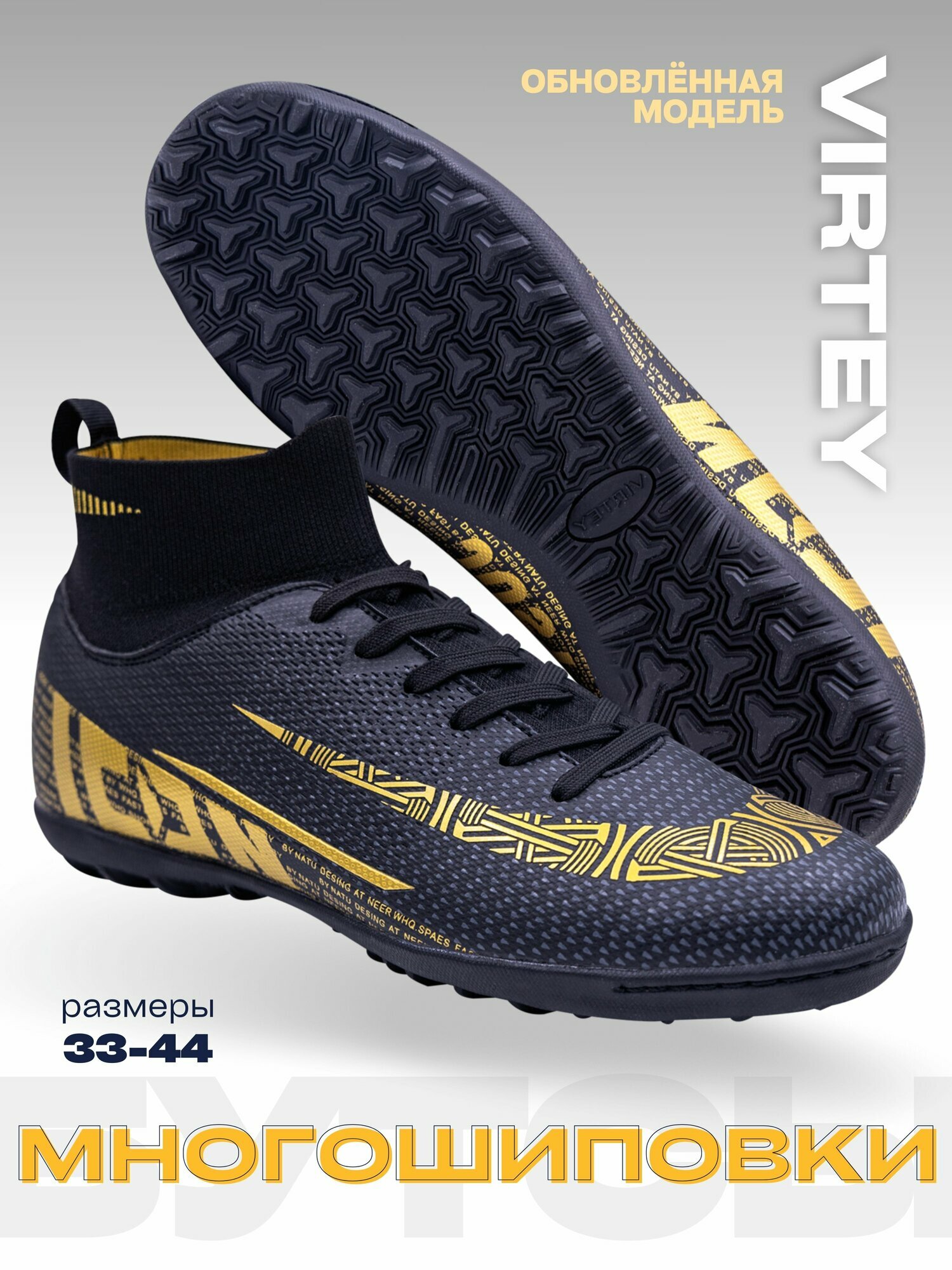 СохранитьСороконожки для футбола, многошиповки для футбола Virtey 21810 ICON р.43 чёрный/золото интересное:
