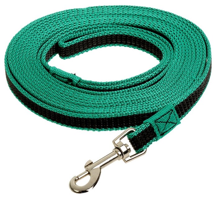 Поводок зооник капроновый с двойной латексной нитью зеленый для собак (7 м/20 мм)