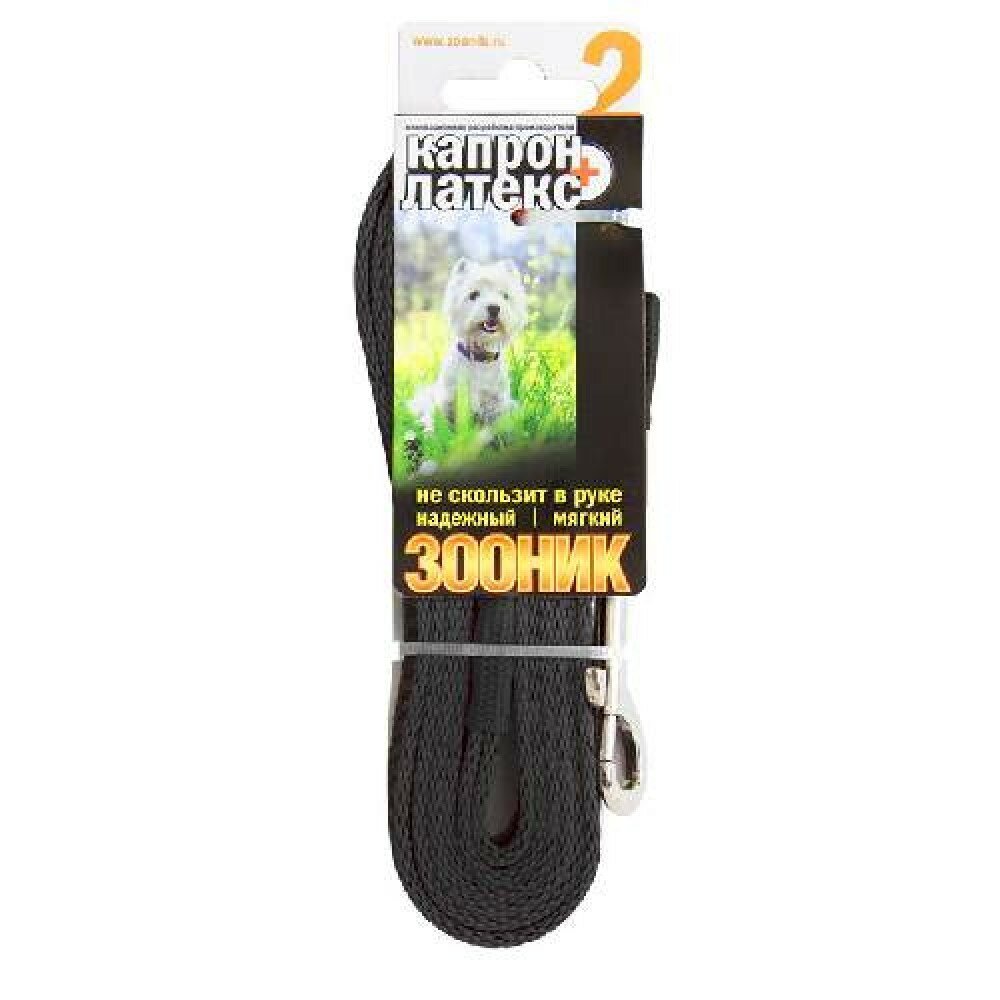 Поводок для собак Зооник капрон+латексная нить двойная 2 м 20 мм черный