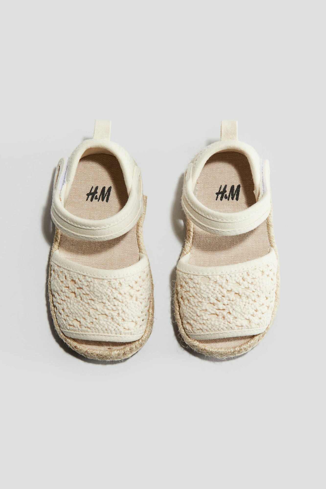 Сандалии H&M кружевные с широким ремешком, размер 24,бежевый