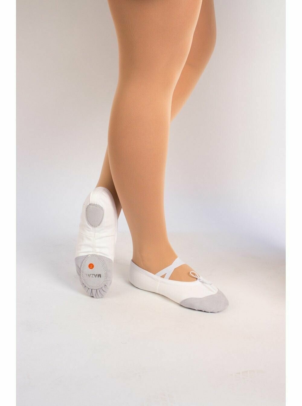 Балетки детские для танцев, гимнастики, хореографии и балета с замшевым усиленным мысом унисекс Mazal, цвет белый, размер 30
