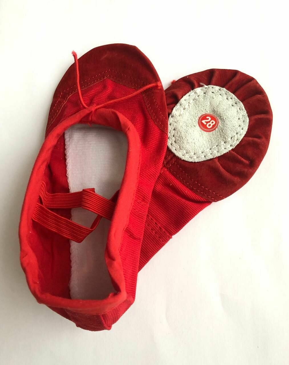 Балетки детские для танцев, гимнастики, хореографии и балета с замшевым усиленным мысом унисекс, цвет красный, размер 28
