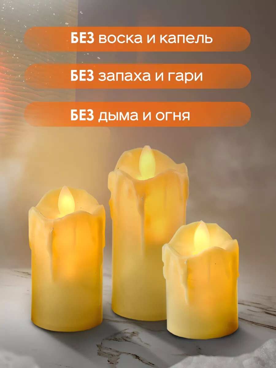 Свечи светодиодные декоративные на батарейках, набор 3 шт. интересное: