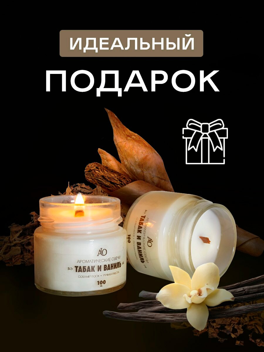Свеча ароматическая "Табак и ваниль" с деревянным фитилем интересное: