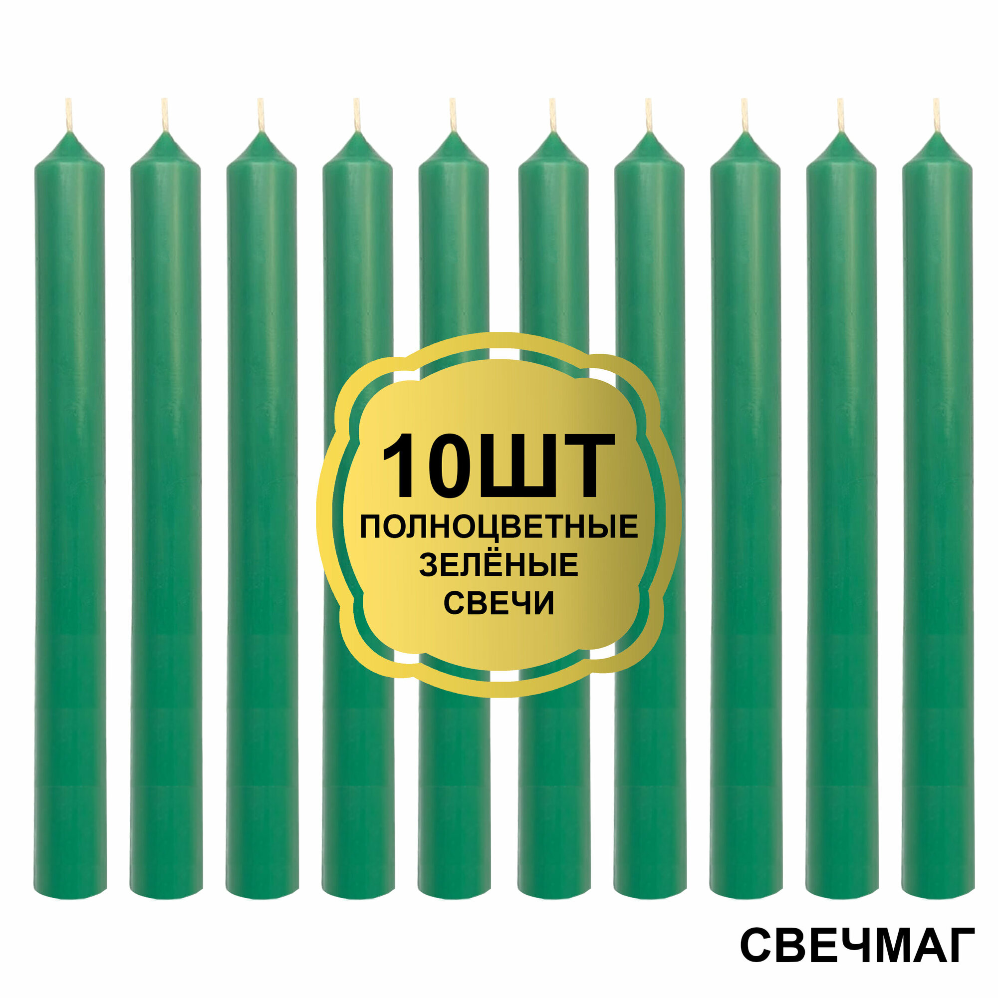 Купить Свечи зеленые классика для магии "СвечМаг", 20х2 см, 10 штук