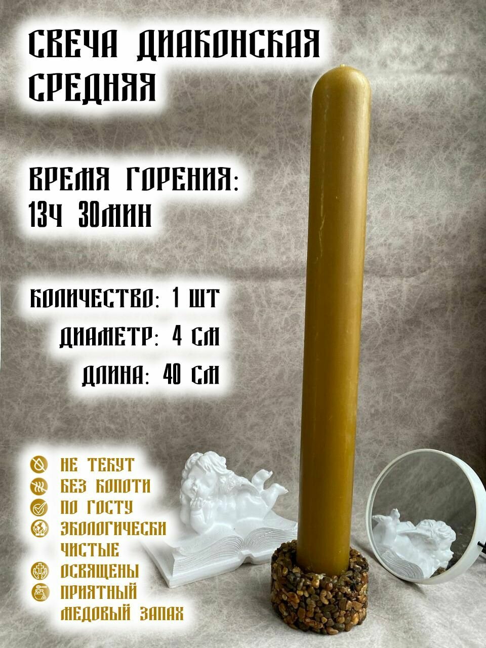 | Комплектация | Восковая Диаконская средняя свеча |