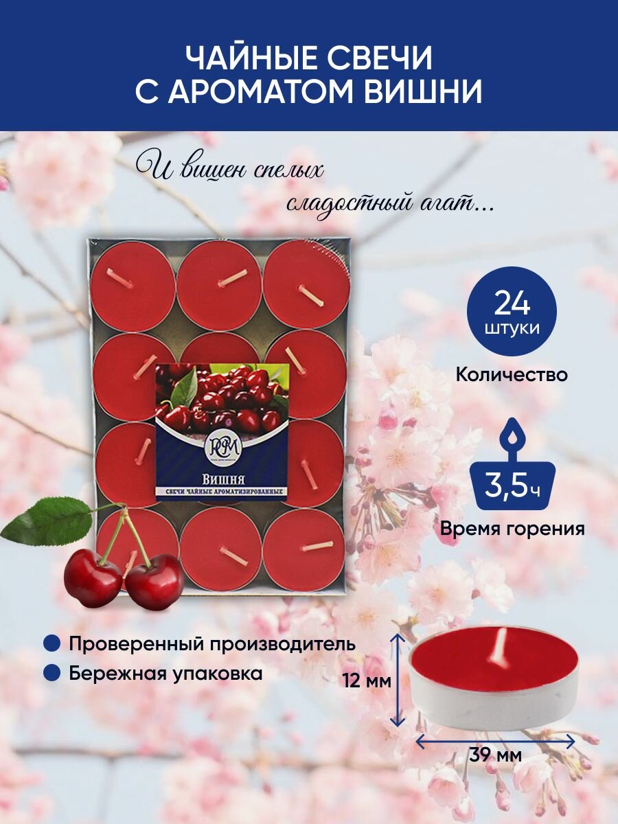 Свечи чайные ароматические Вишня 24 шт интересное: