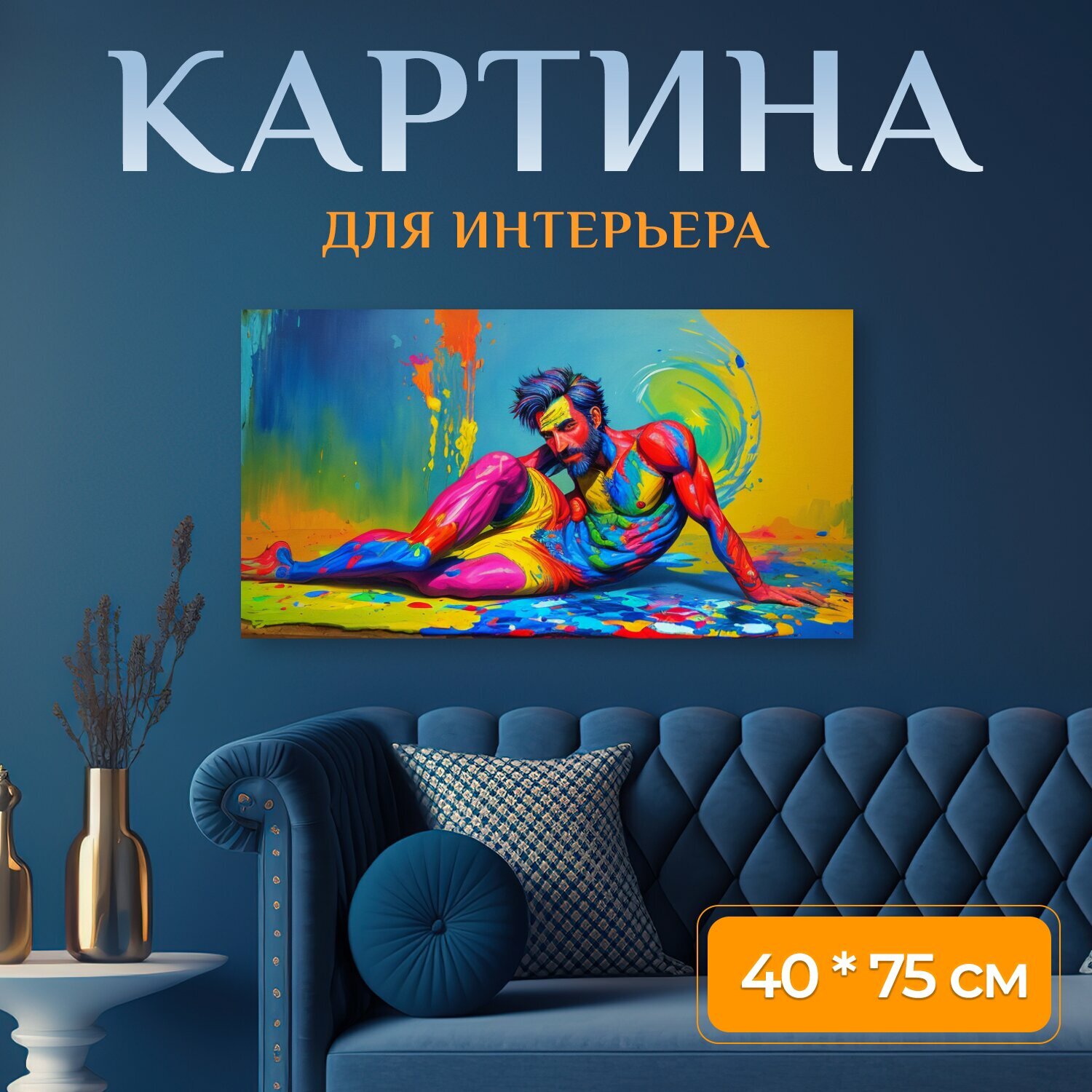 Картина на холсте "С голым мужчиной, " на подрамнике 75х40 см. для интерьера интересное:
