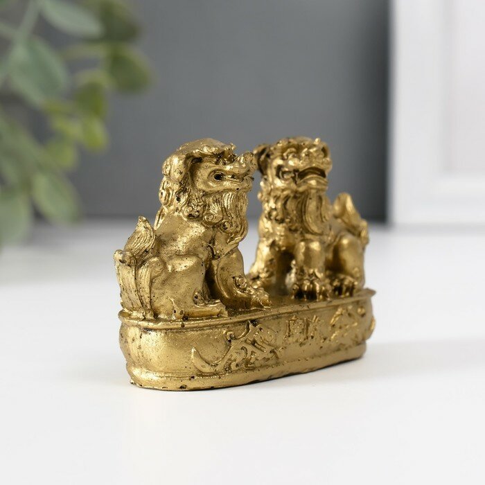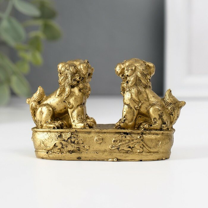 Купить Нэцкэ полистоун "Небесные львы (собаки Фу)" бронза 2,8х8,2х5 см