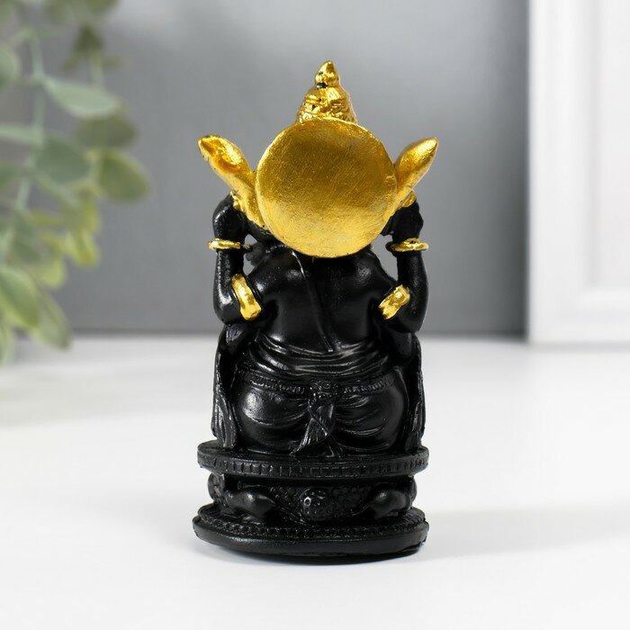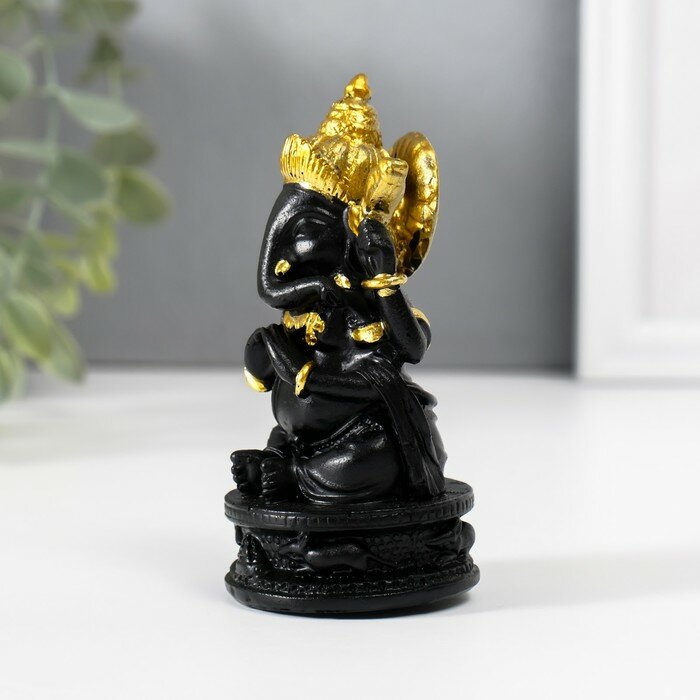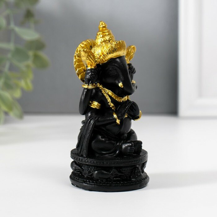 Купить Нэцкэ полистоун "Ганеша в золотом головном уборе" чёрный 4,7х4,7х9,7 см