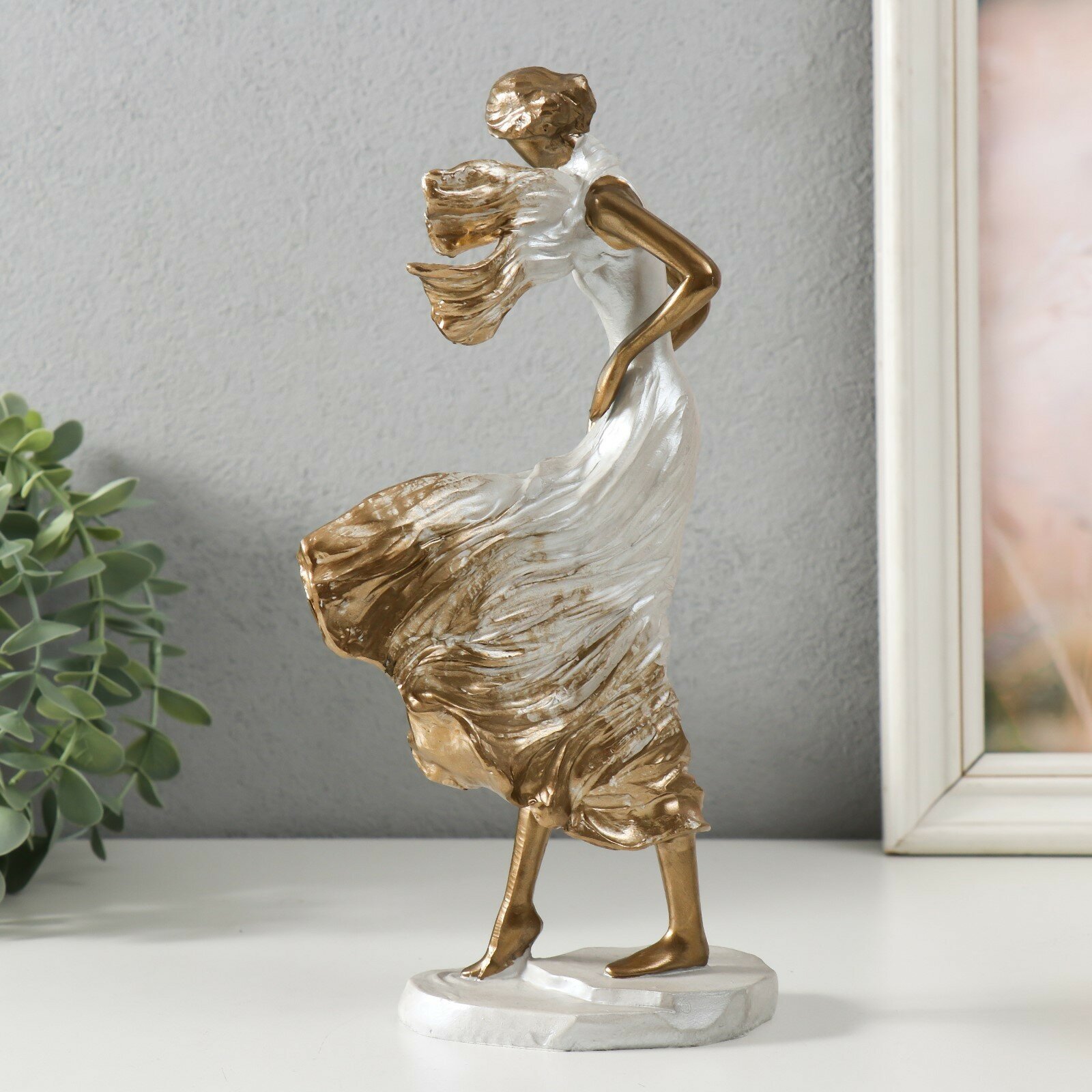 Купить Сувенир полистоун "Девушка с шарфом. Ветер" под бронзу 12,5х8,5х25 см