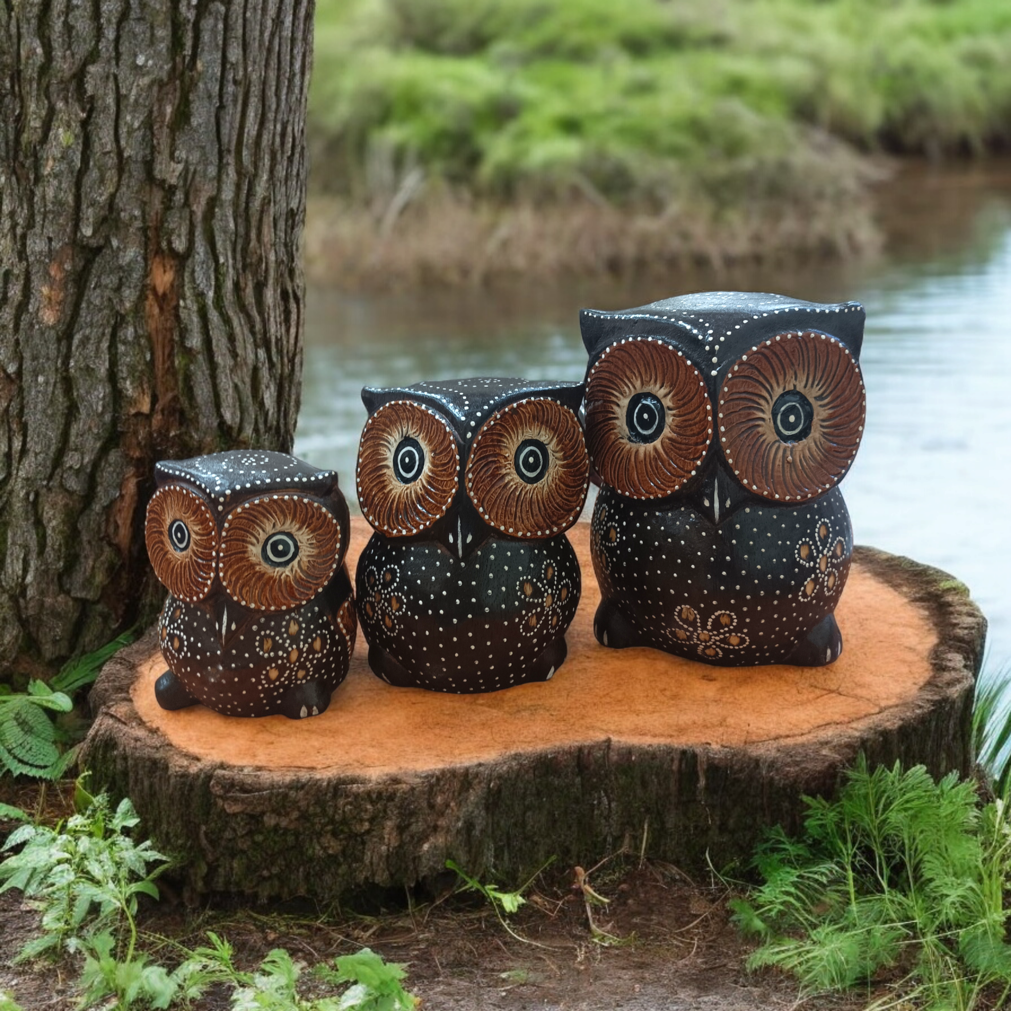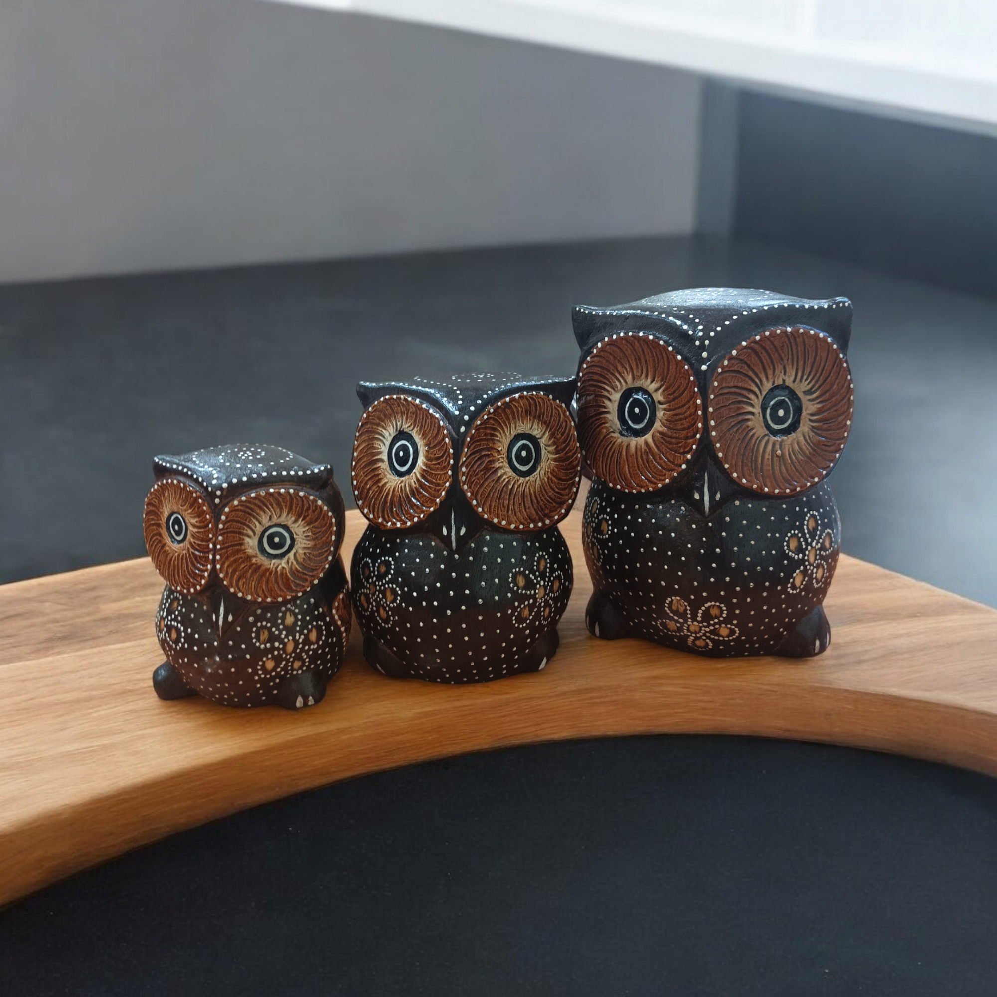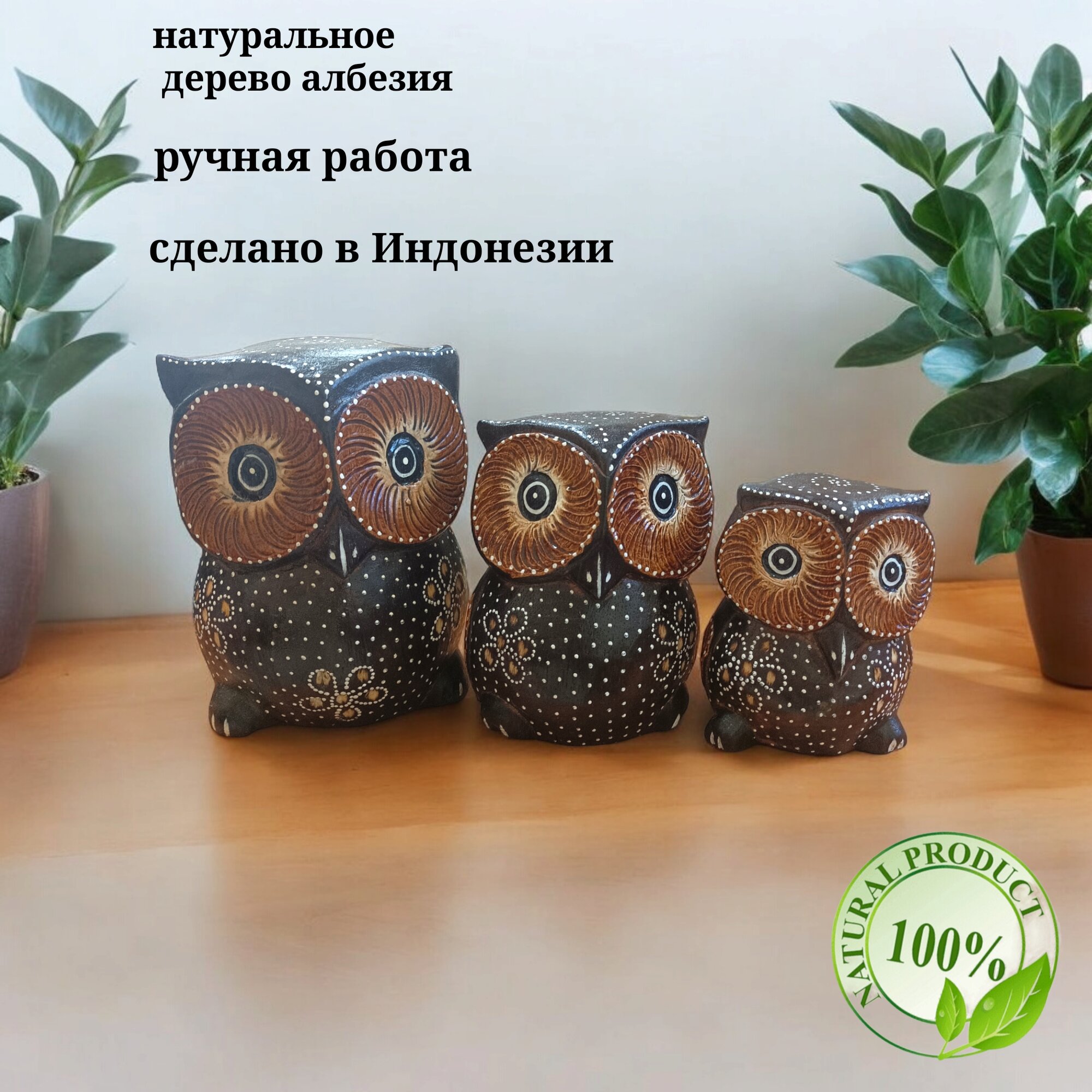 Деревянные статуэтки Совы 10, 12, 15 см Набор 3 шт. Ручная работа (Индонезия)статуэтка сова набор 3 шт интересное: