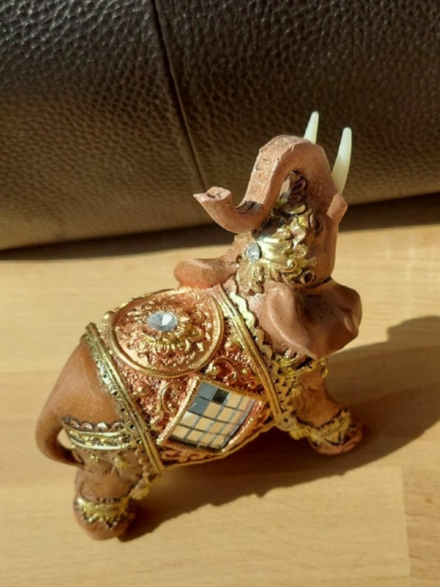 Слоник хобот вверх , символ процветания для дома, золотистый 9 см