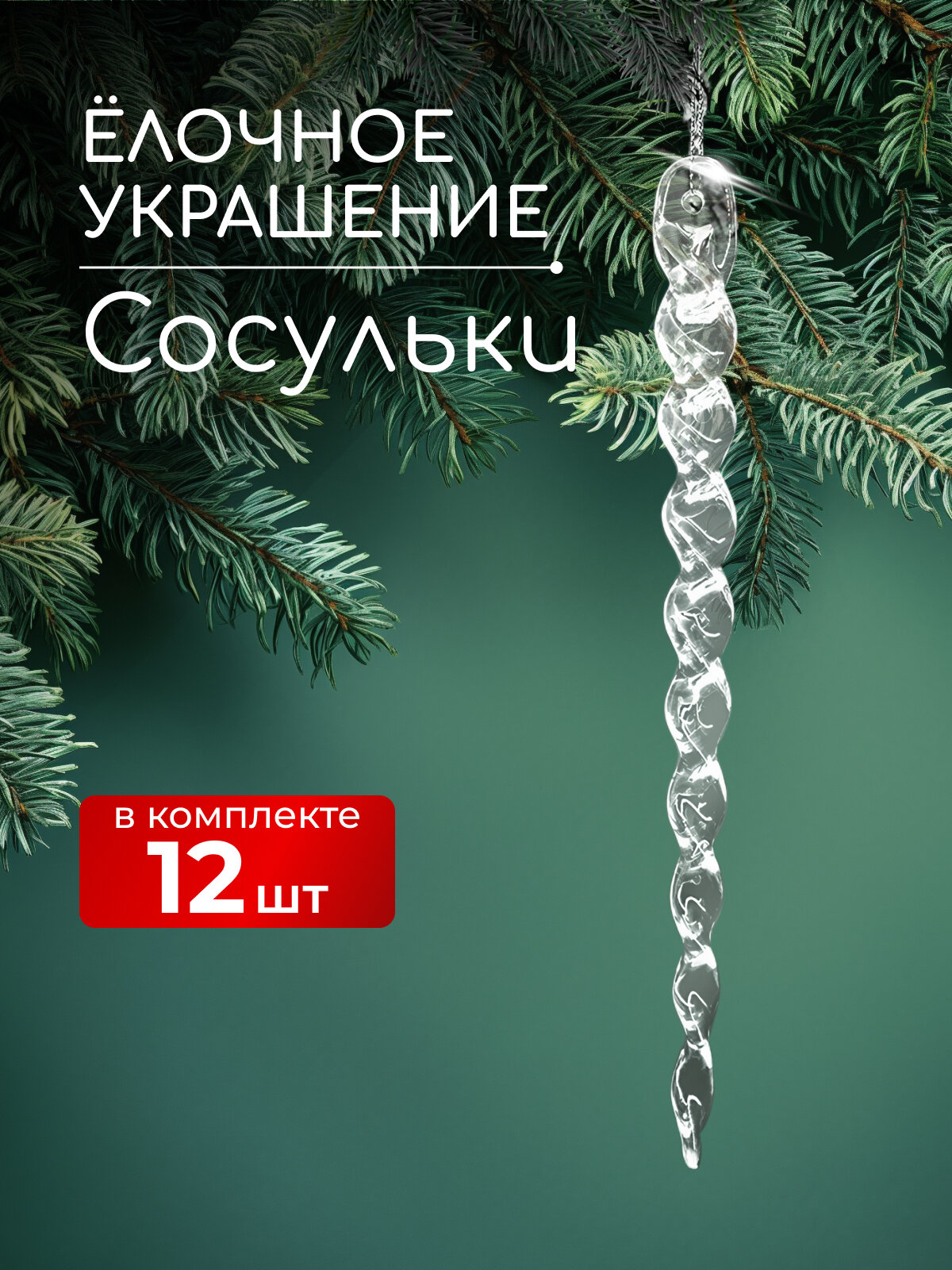 Набор елочных игрушек "Сосульки", 13 сантиметров, прозрачный акрил, 12 штук интересное: