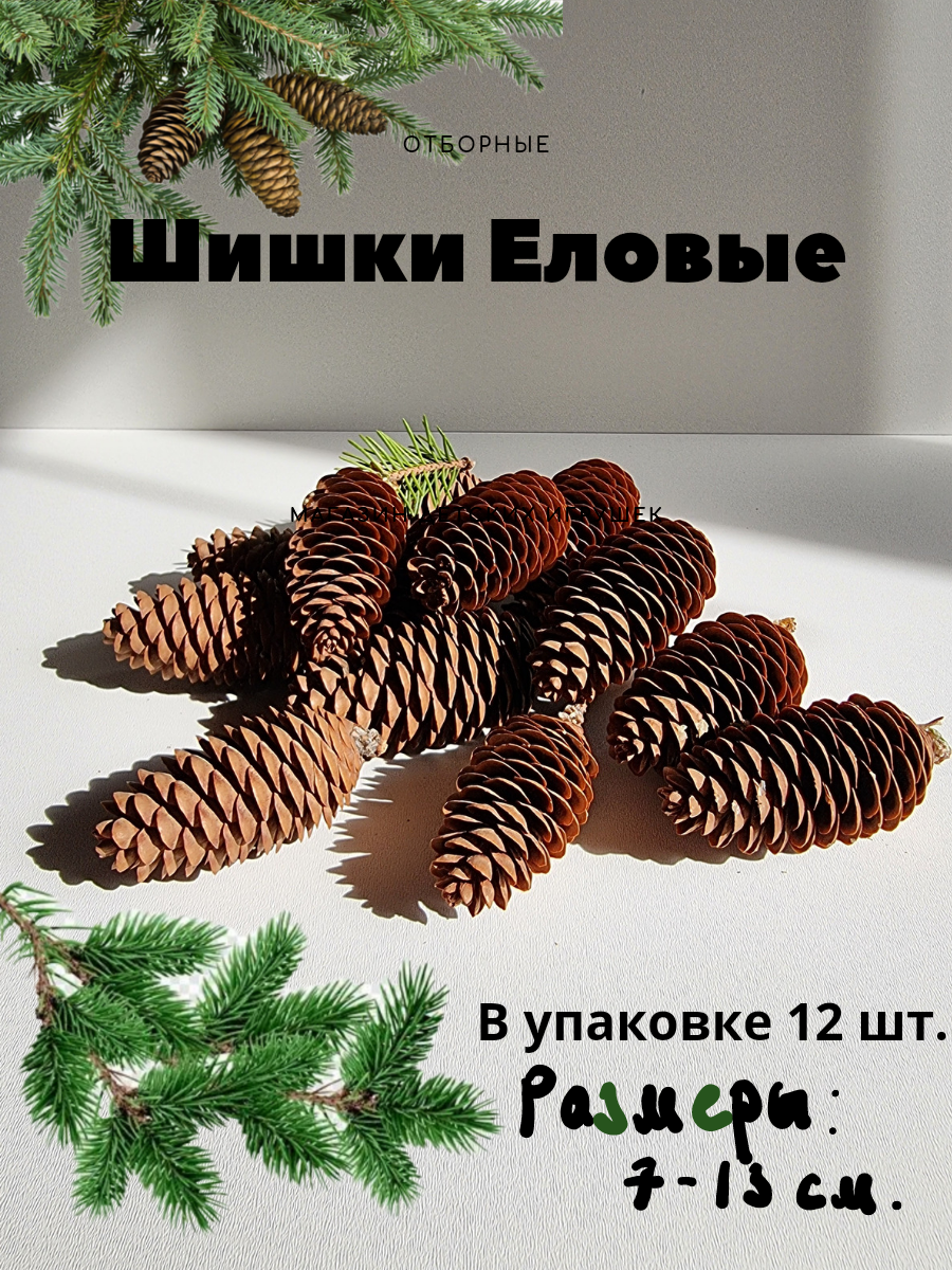 Шишки еловые отборные12 шт в упоковке интересное: