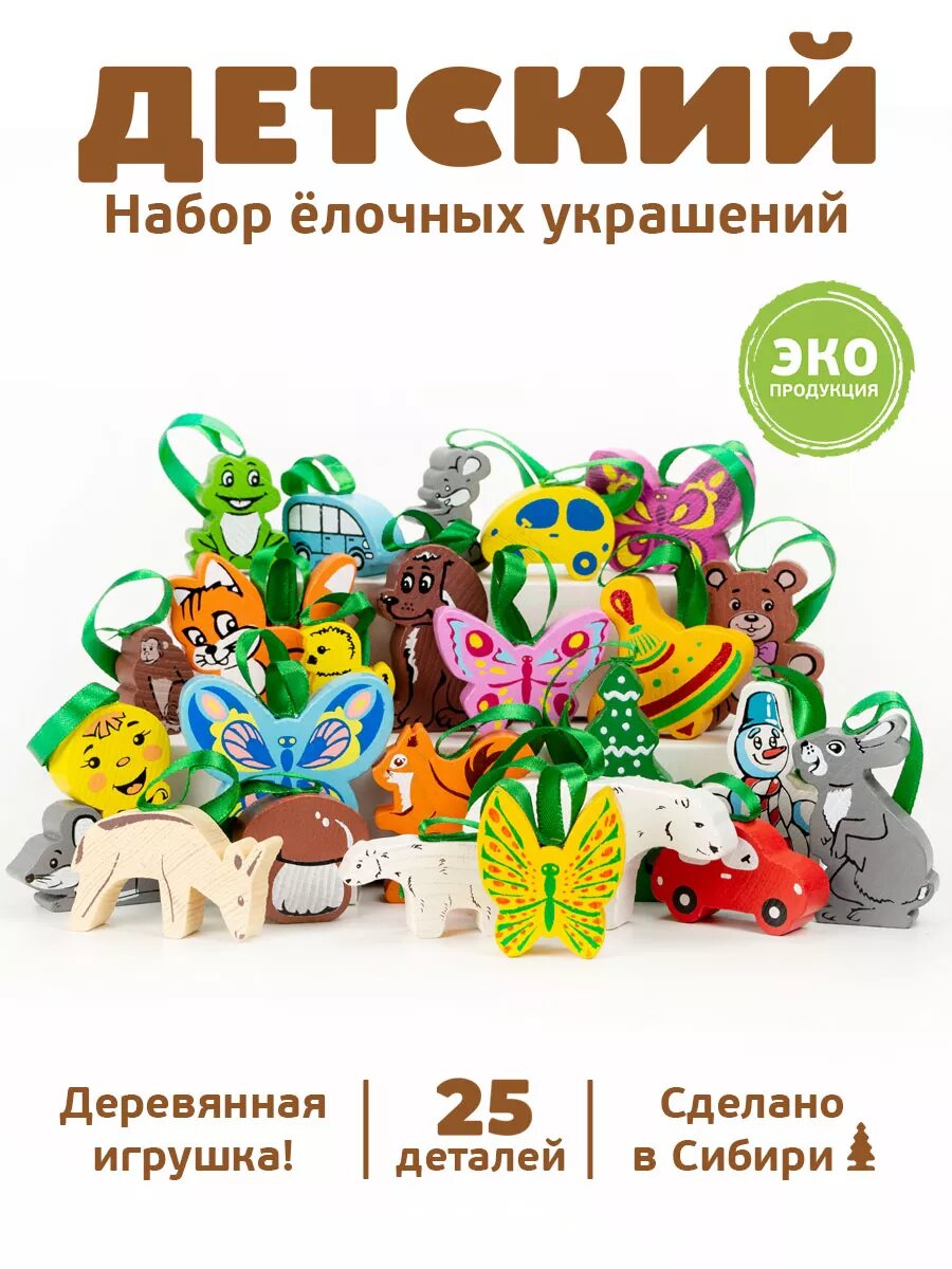 Набор деревянных елочных игрушек "Томик Детский", 25 штук