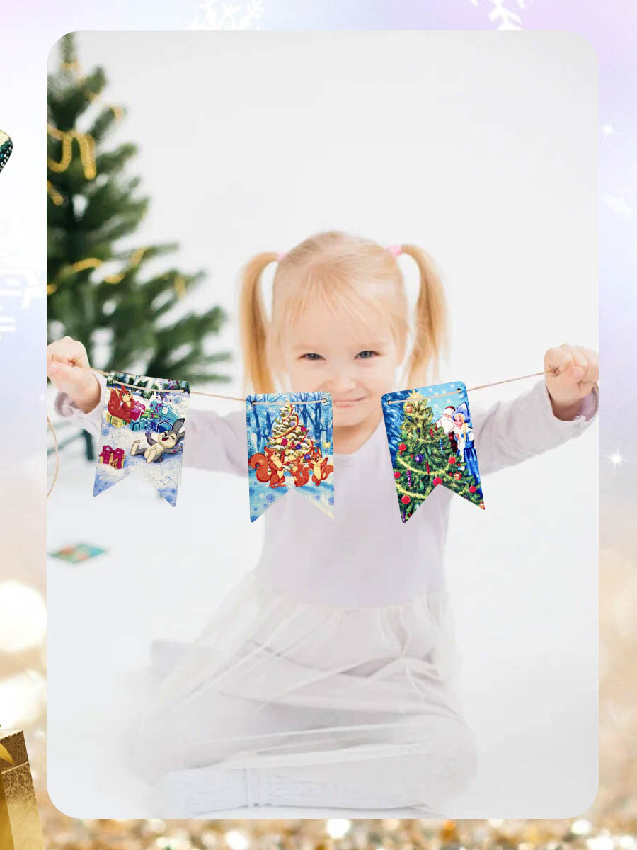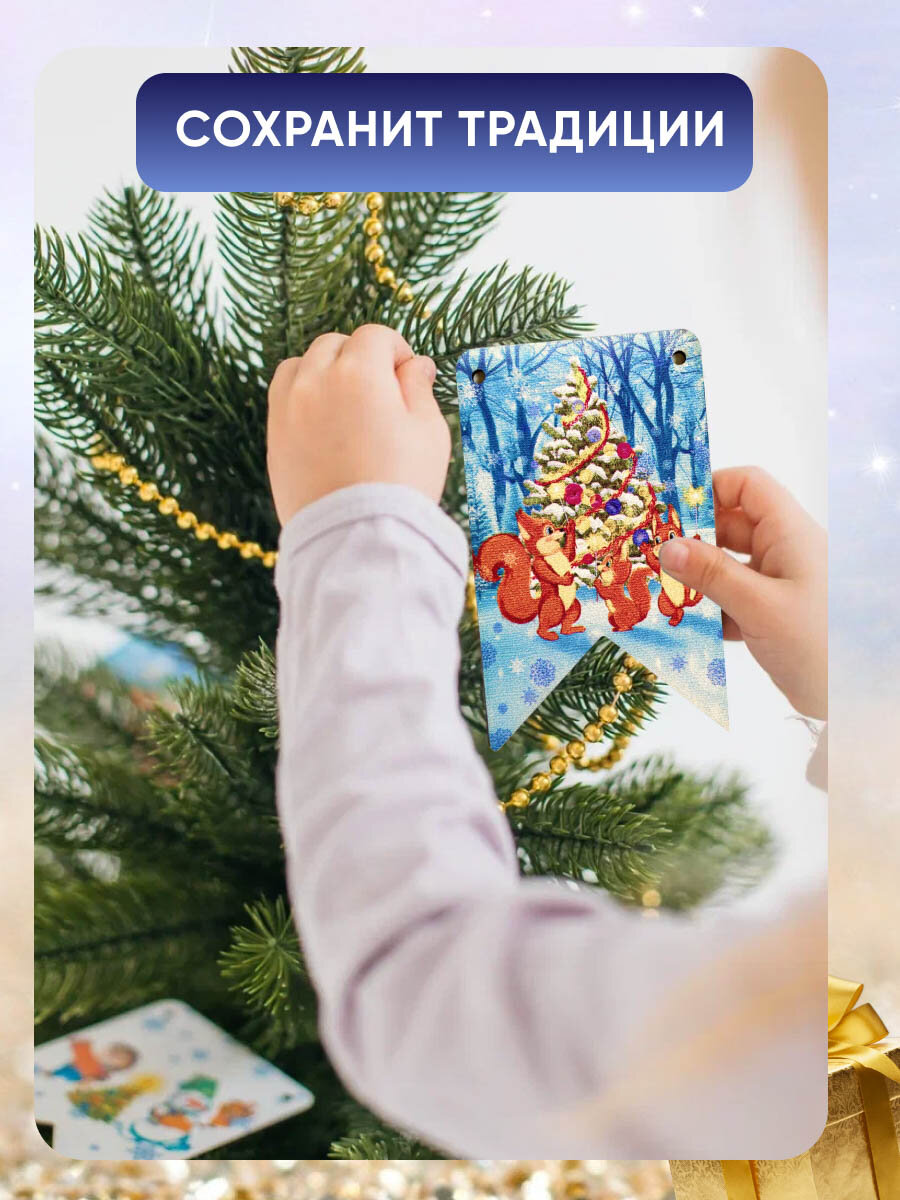 Набор ёлочных украшений, гирлянда на елку, деревянные флажки на ель интересное: