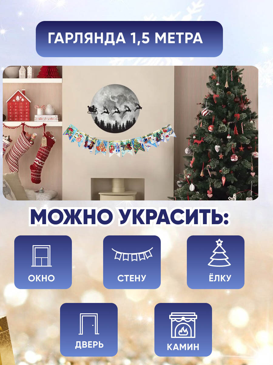 Флажки гирлянда в стиле советских открыток новогодние украшения на елку флажки новогодние ретро - 10 шт в подарочной упаковке