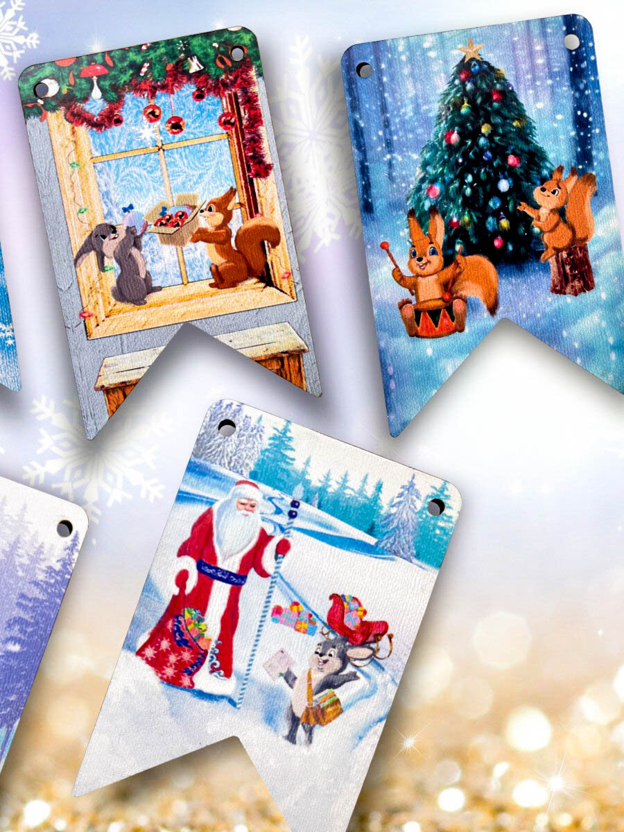 Купить Набор ёлочных украшений, гирлянда на елку, деревянные флажки на ель,