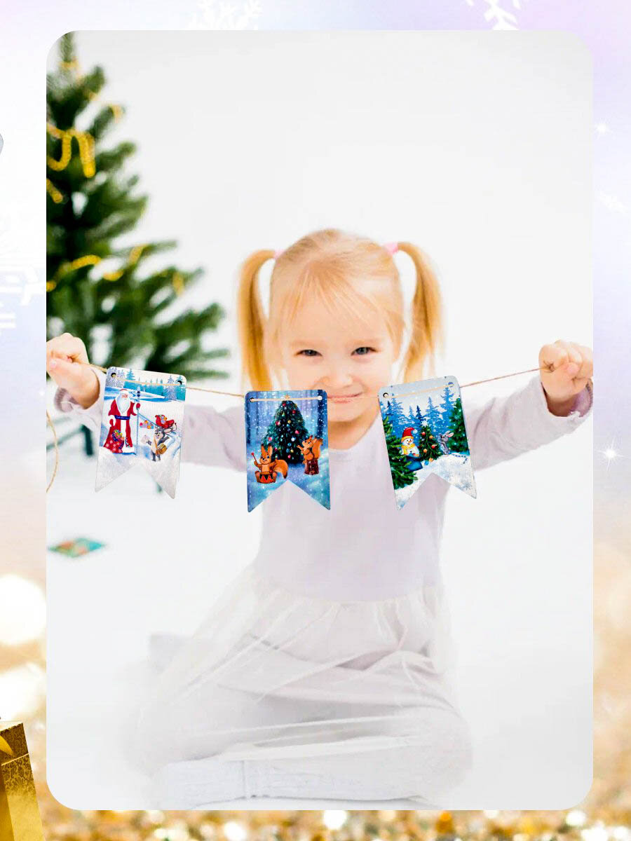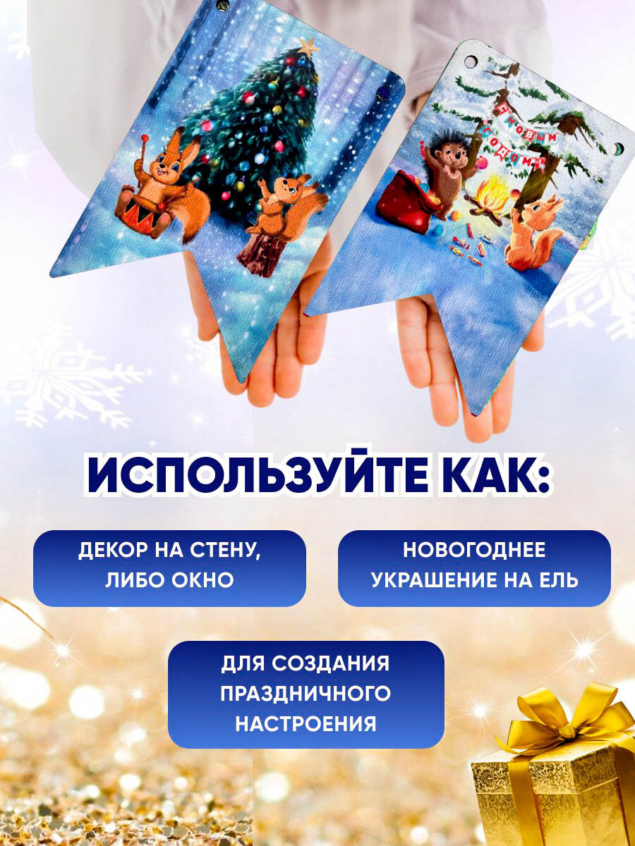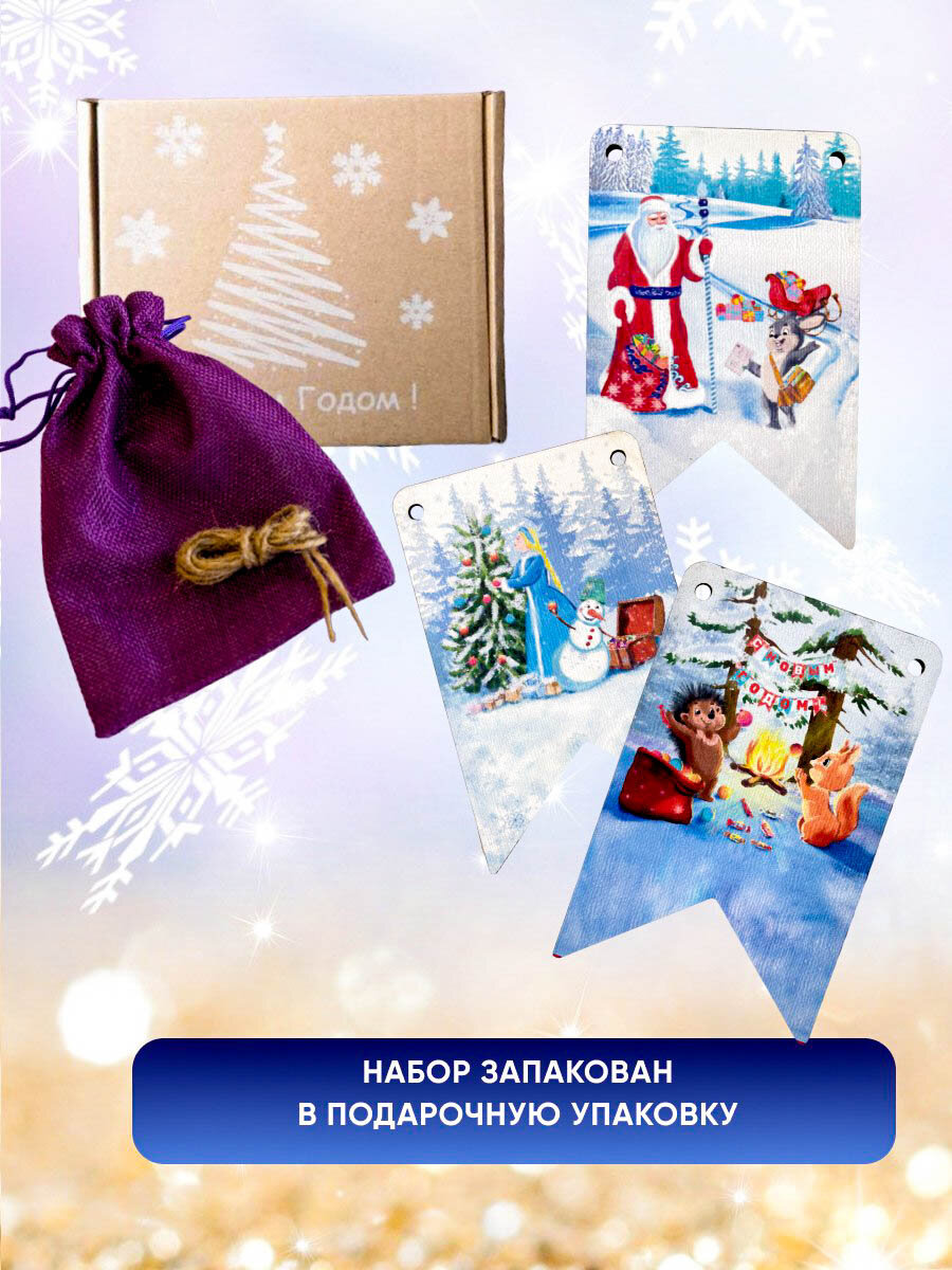 Набор ёлочных украшений, гирлянда на елку, деревянные флажки на ель, интересное: