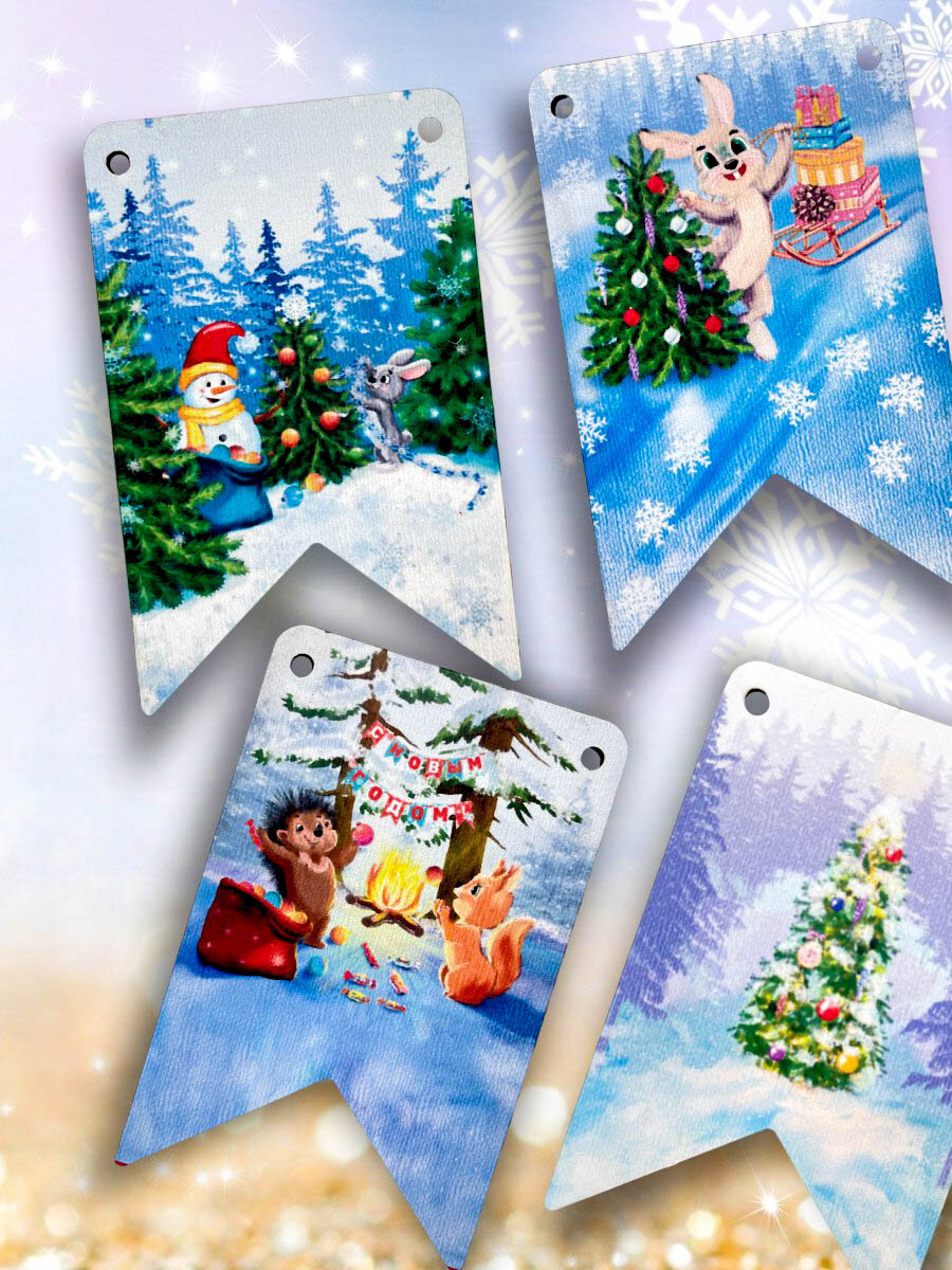 | Комплектация | комплект новогодних флажков на елку - 10 шт, джутовая нить |