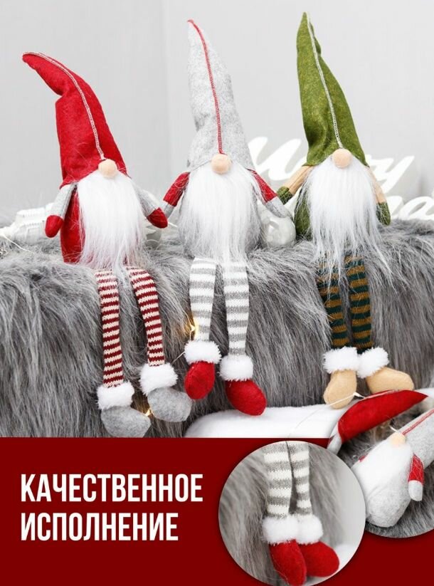 Новогодня игрушка DaV скандинавский гном домовой, мягкая, серый, р-р 50х11 см интересное: