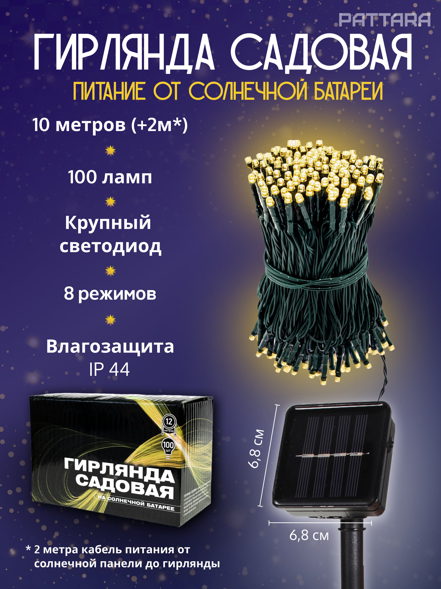 Уличная садовая гирлянда на солнечной батарее 12 м