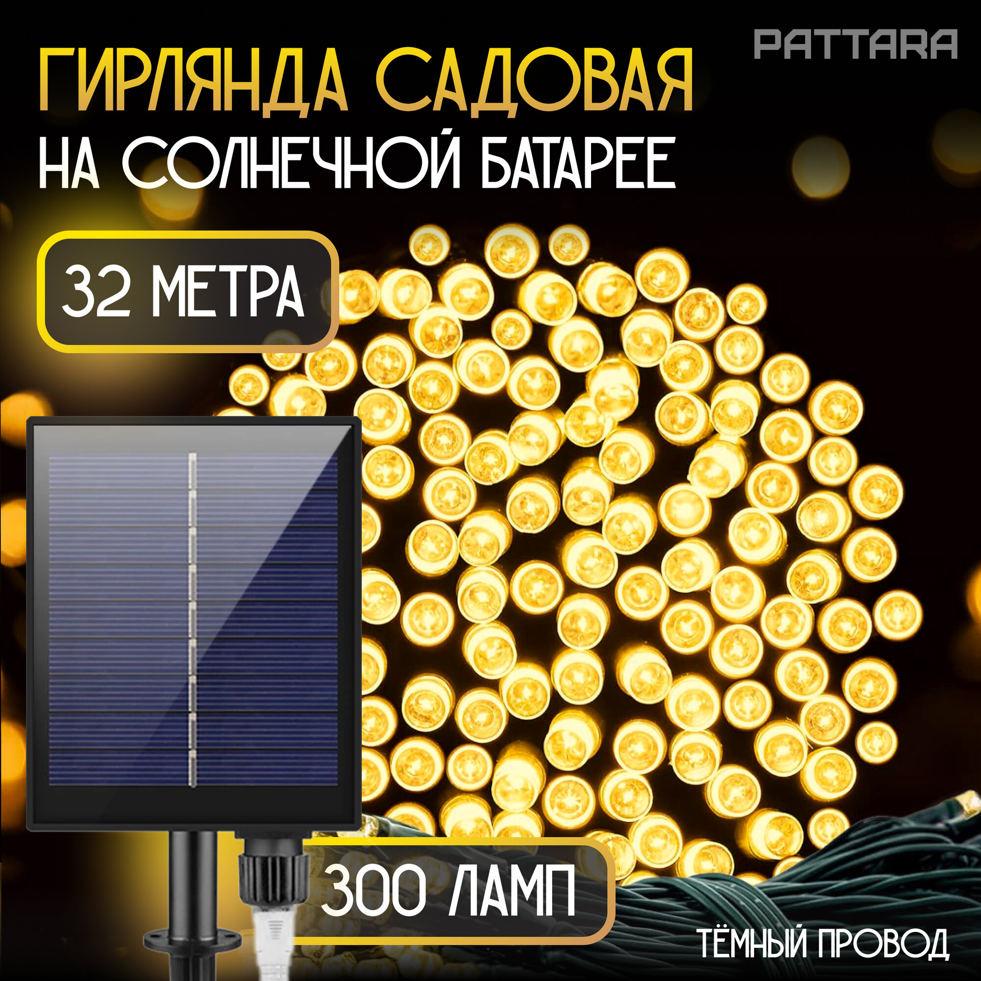 Купить Уличная садовая гирлянда на солнечной батарее 32 м, темный силиконовый провод