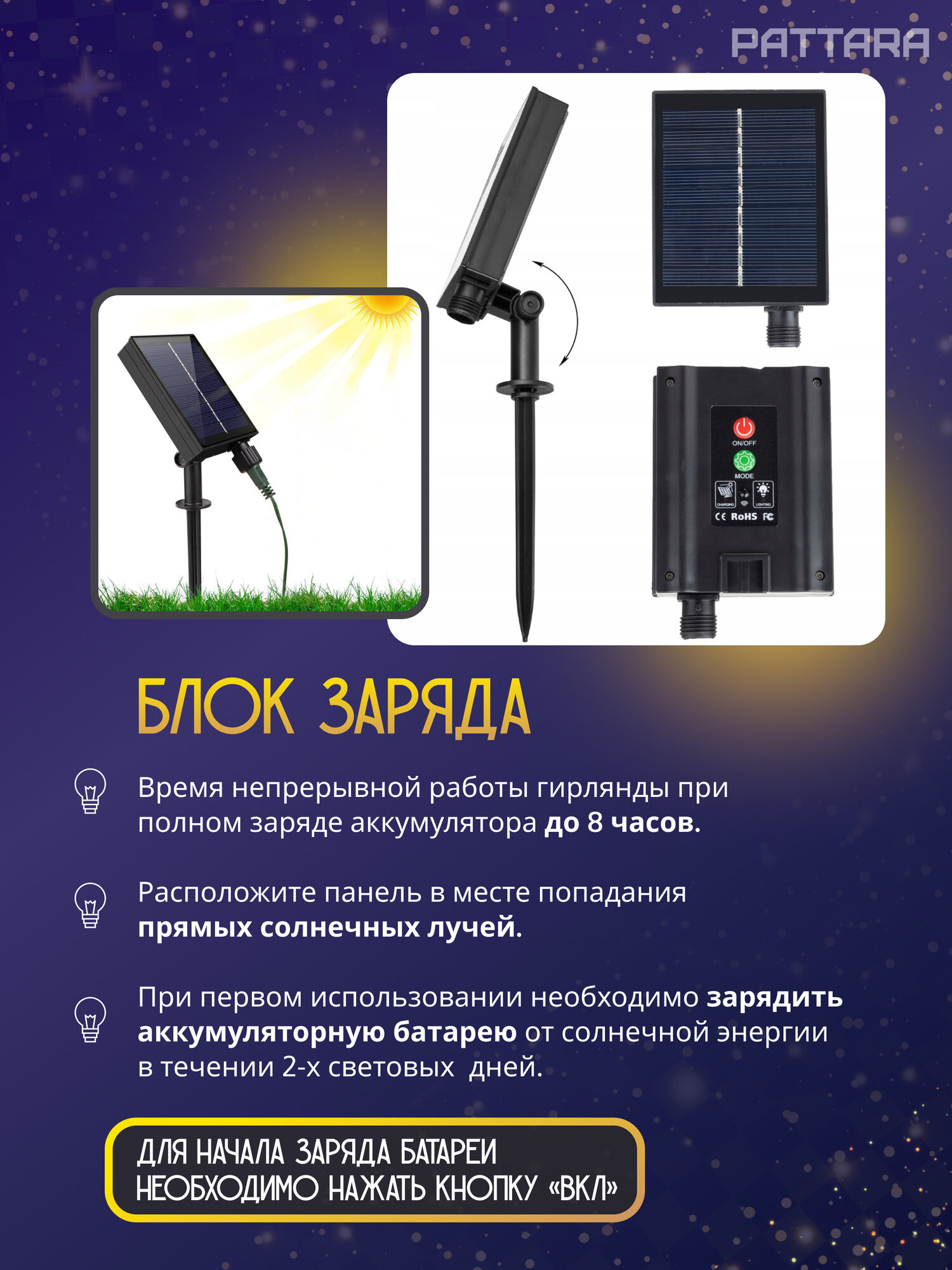 | Источник питания | от солнечной батареи |