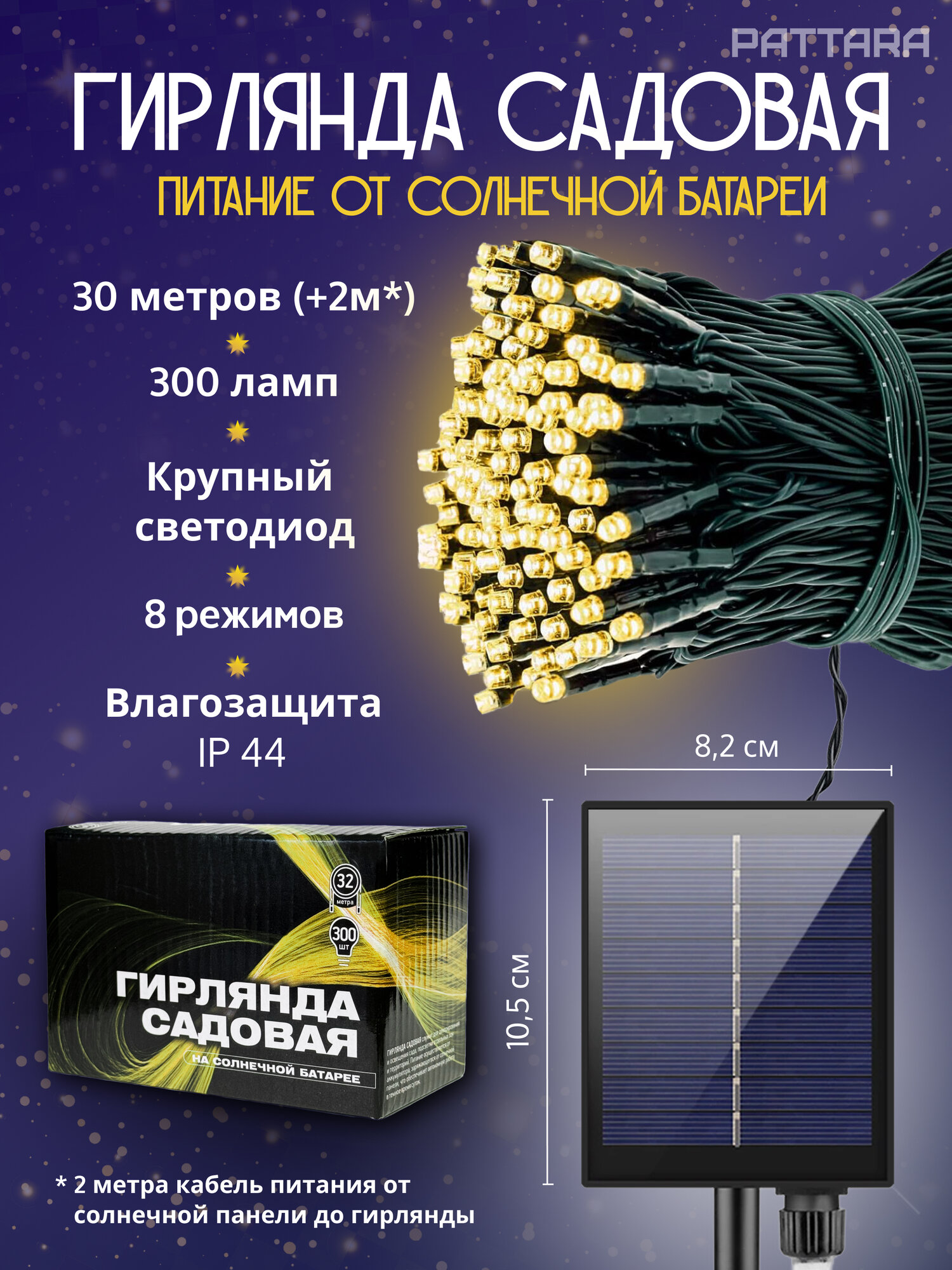 Ниже Вы можете прочитать отзывы на Уличная садовая гирлянда на солнечной батарее 32 м, темный силиконовый провод, ознакомится с подробными характеристиками, посмотреть интересные обзоры и фотографии на Уличная садовая гирлянда на солнечной батарее 32 м, темный силиконовый провод.