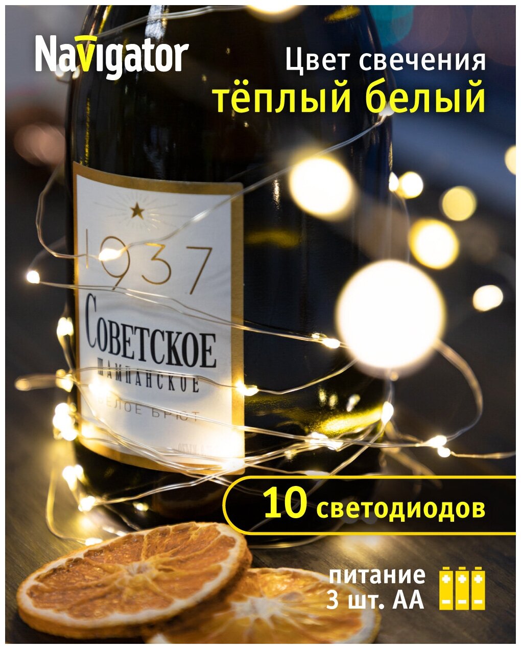 Гирлянда с микросветодиодами Navigator 80 710 "Роса" 1,2 м, теплый белый, на батарейках интересное: