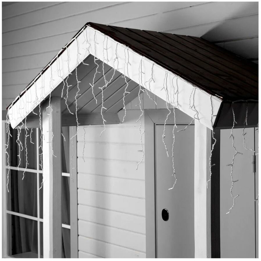 Гирлянда уличная бахрома 50м белый провод / Гирлянда светодиодная, питание от сети 220В, белый провод, белый свет