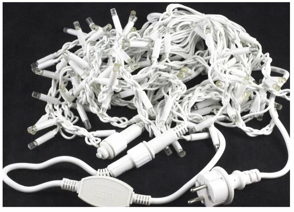 Купить Гирлянда уличная бахрома 50м белый провод / Гирлянда светодиодная, питание от сети 220В, белый провод, белый свет