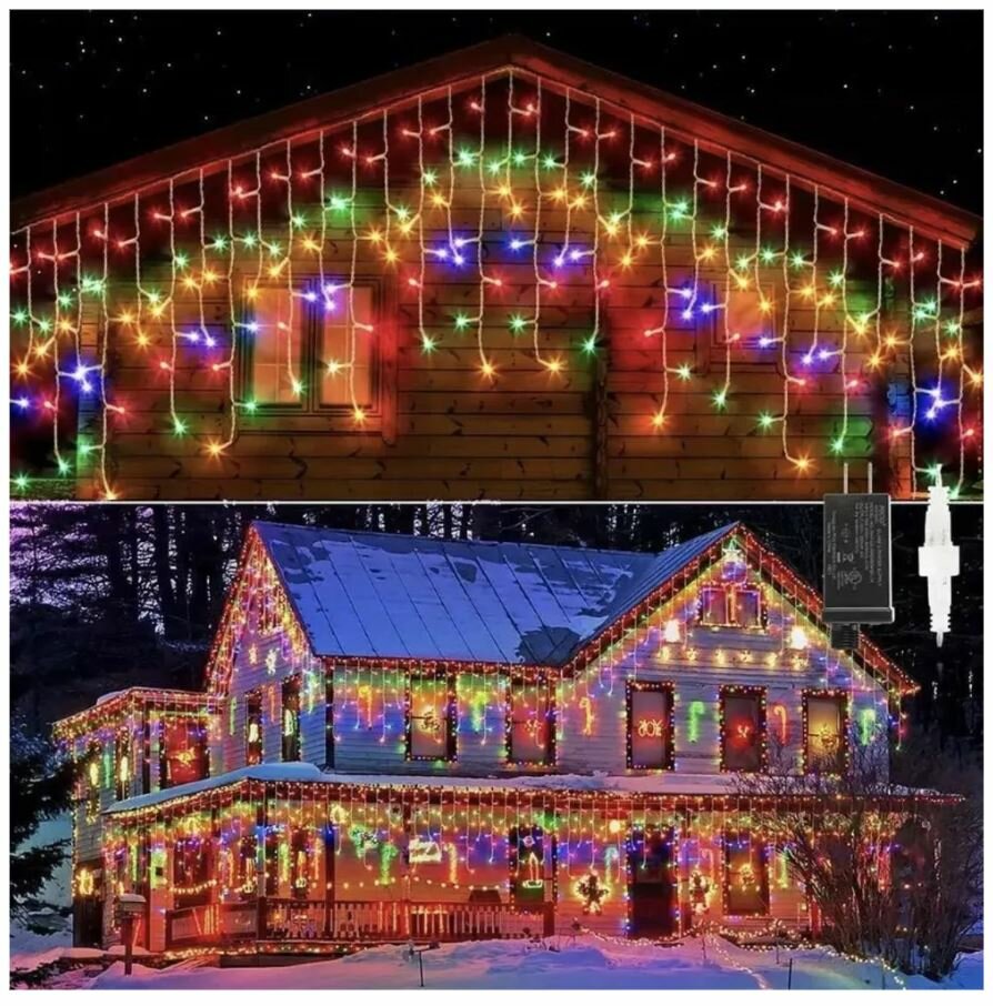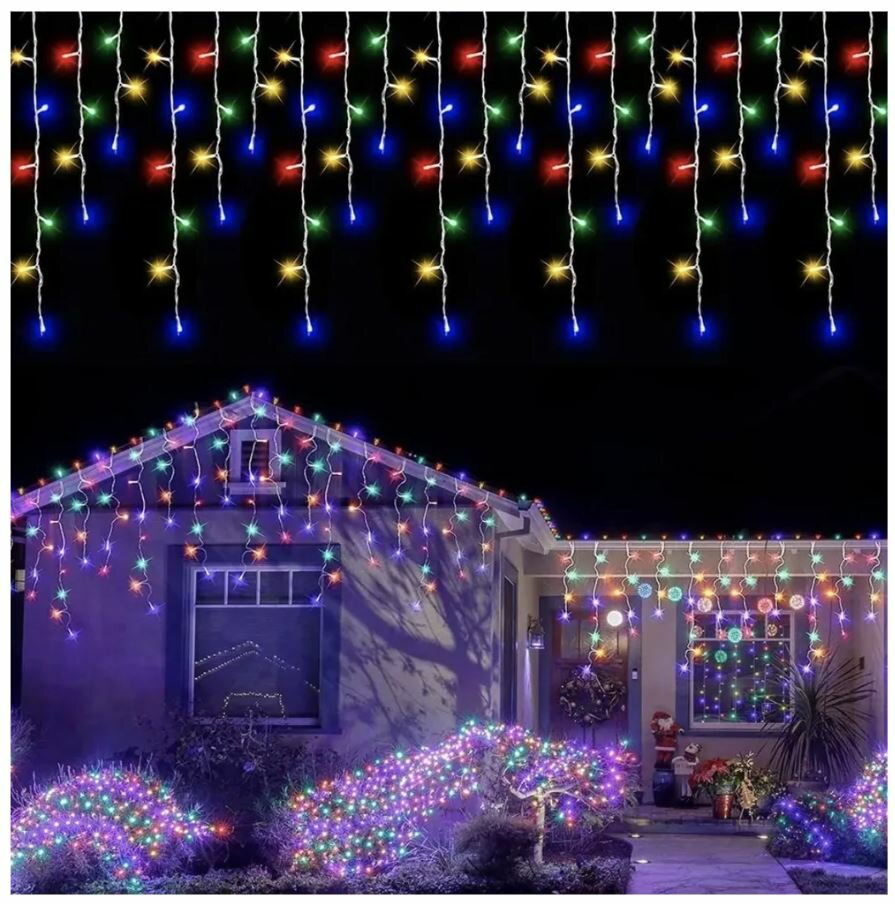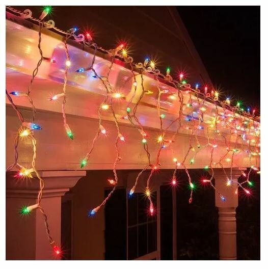 Купить Гирлянда уличная бахрома 50м белый провод / Гирлянда светодиодная, питание от сети 220В, белый провод, разноцветный свет