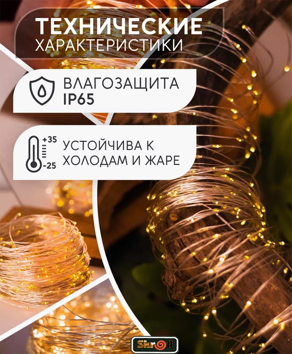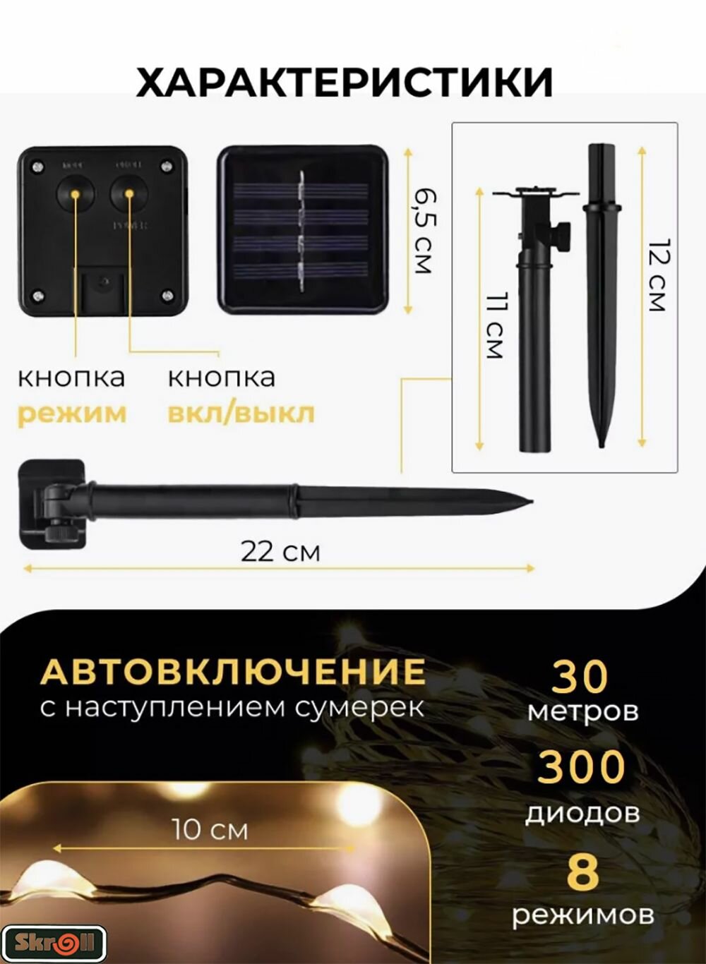 Уличная гирлянда роса на солнечной батарее Холодного оттенка, 200 диодов 20м/ Skroll интересное: