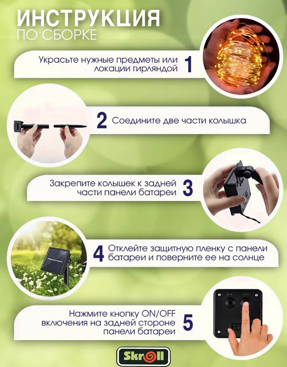 | Комплектация | Гирлянда- 1 шт; Солнечна батарея- 1 шт |